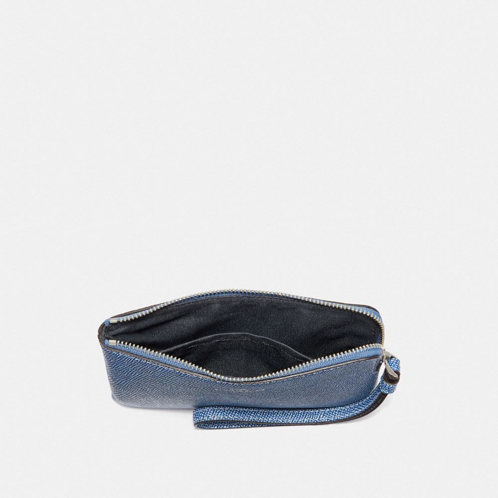 | Crossgrain leather| Two credit card slots| Zip-top closure, fabric lining| Wrist strap attached| 6 1/4" (L) x 4" (H) x 1/2" (W)| Fits an iPhone or Android