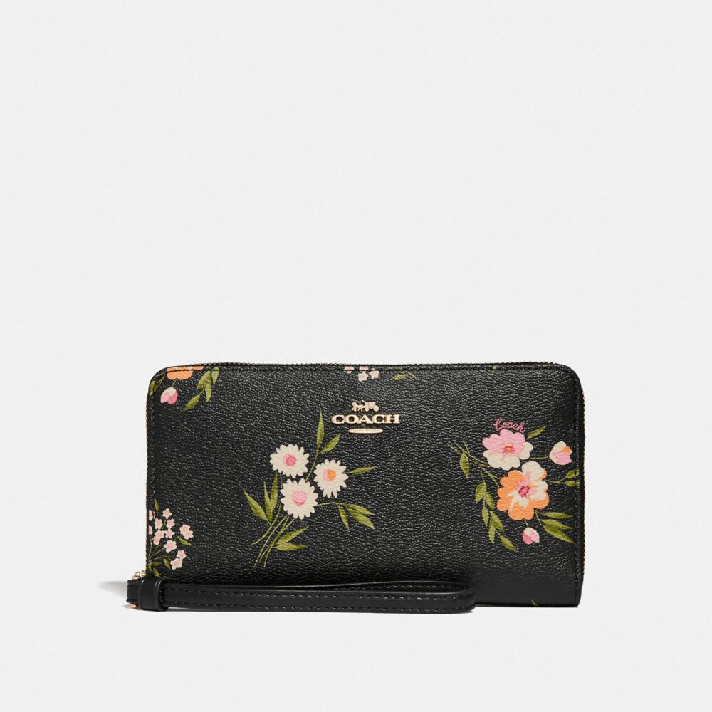 LARGE PHONE WALLET WITH TOSSED DAISY PRINT