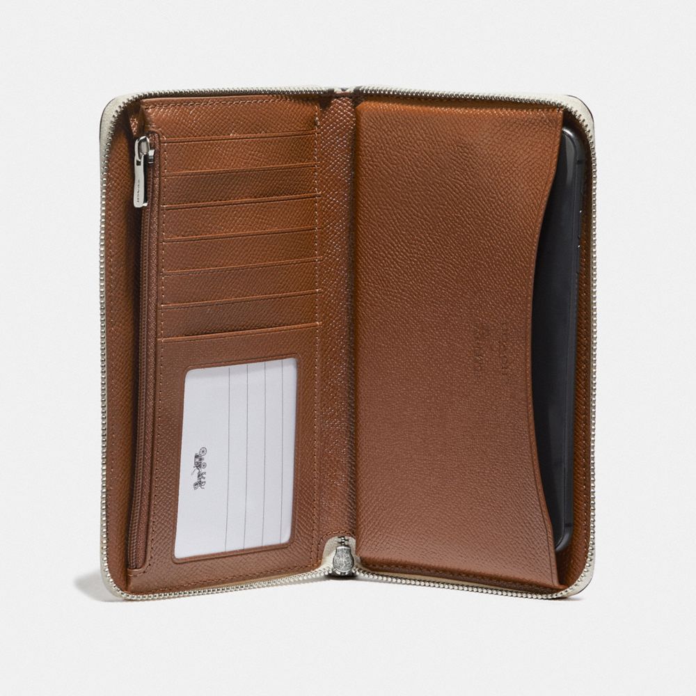 Crossgrain leather| Six credit card slots| ID window| Zip coin pocket| Inside phone pocket| Zip-around closure| Wrist strap attached| 7 1/4" (L) x 4" (H) x 3/4" (W)| Ms. PAC-MAN™&©BANDAI NAMCO Entertainment Inc.