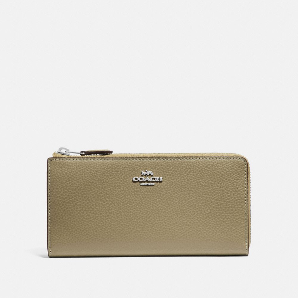 Polished pebble leather| 12 credit card slots| Full-length bill compartments| Zip coin pocket| Zip closure| 7 3/4" (L) x 3 3/4" (H) x 3/4" (W)