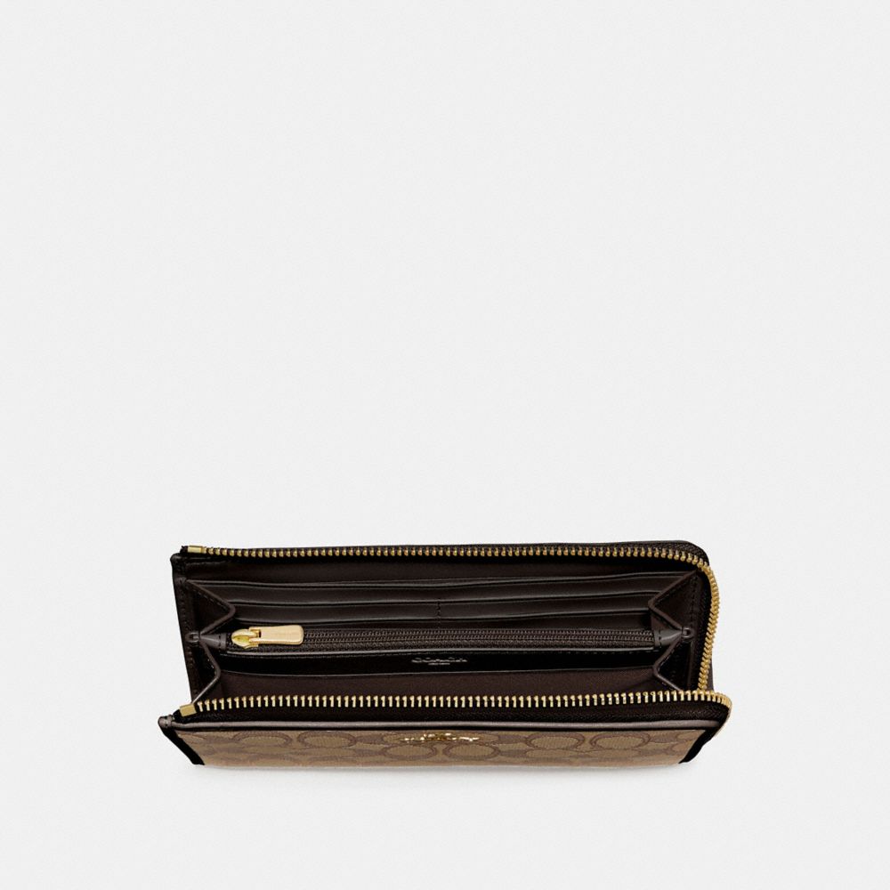 Signature jacquard with smooth leather details| 12 credit card slots| Full-length bill compartments| Zip coin pocket| Zip closure| 7 3/4" (L) x 3 3/4" (H) x 3/4" (W)