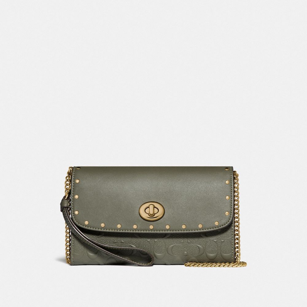 CHAIN CROSSBODY IN SIGNATURE LEATHER WITH RIVETS