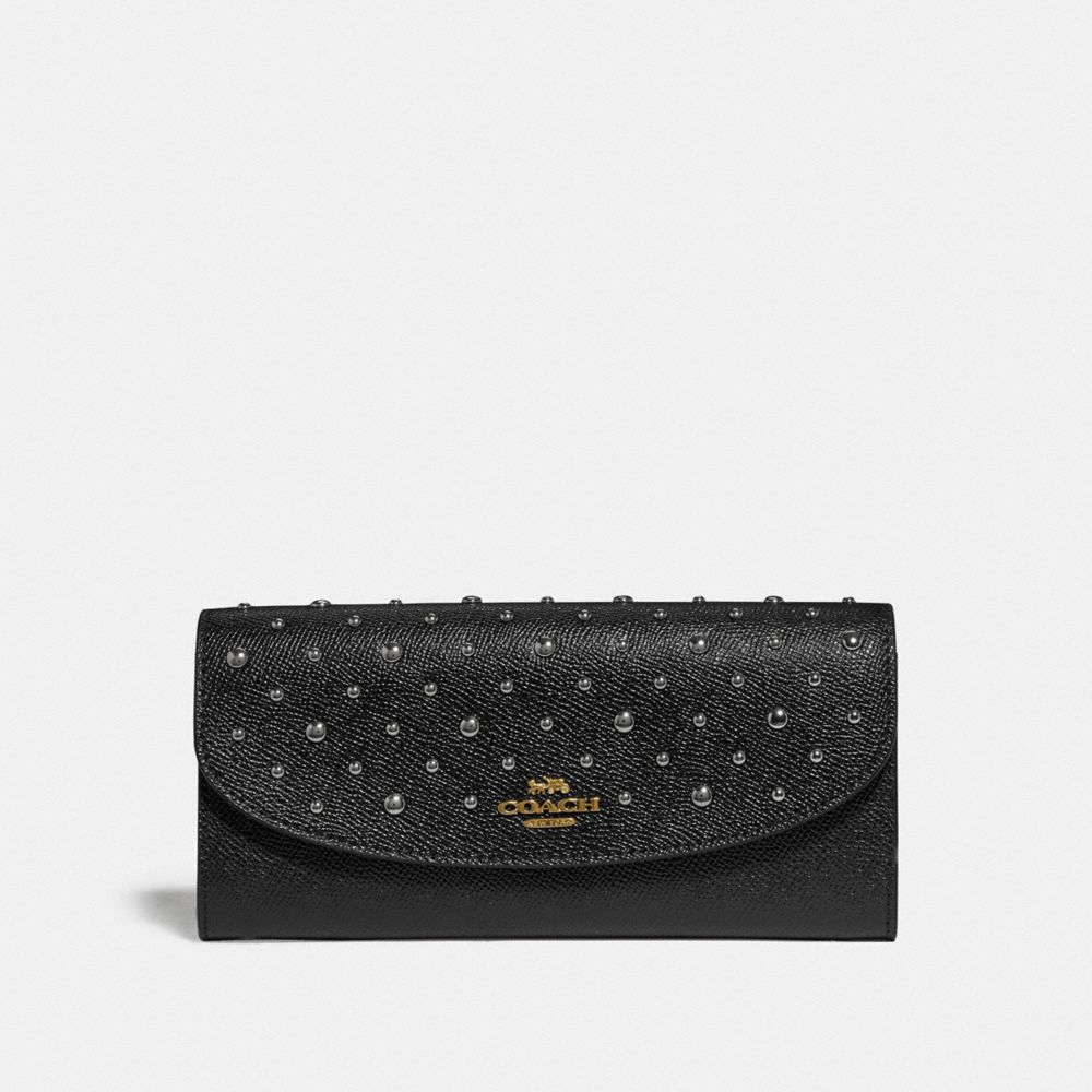 Crossgrain leather| 12 credit card slots| Full-length bill compartment| Zip coin pocket| Snap closure| Outside open pocket| 7 3/4" (L) x 4" (H) x 3/4" (W)