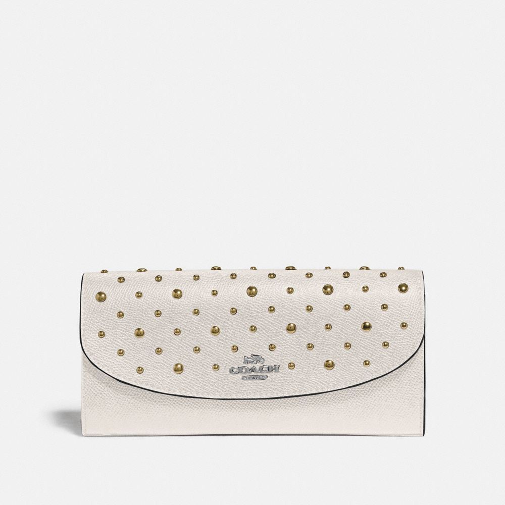 Crossgrain leather| 12 credit card slots| Full-length bill compartment| Zip coin pocket| Snap closure| Outside open pocket| 7 3/4" (L) x 4" (H) x 3/4" (W)