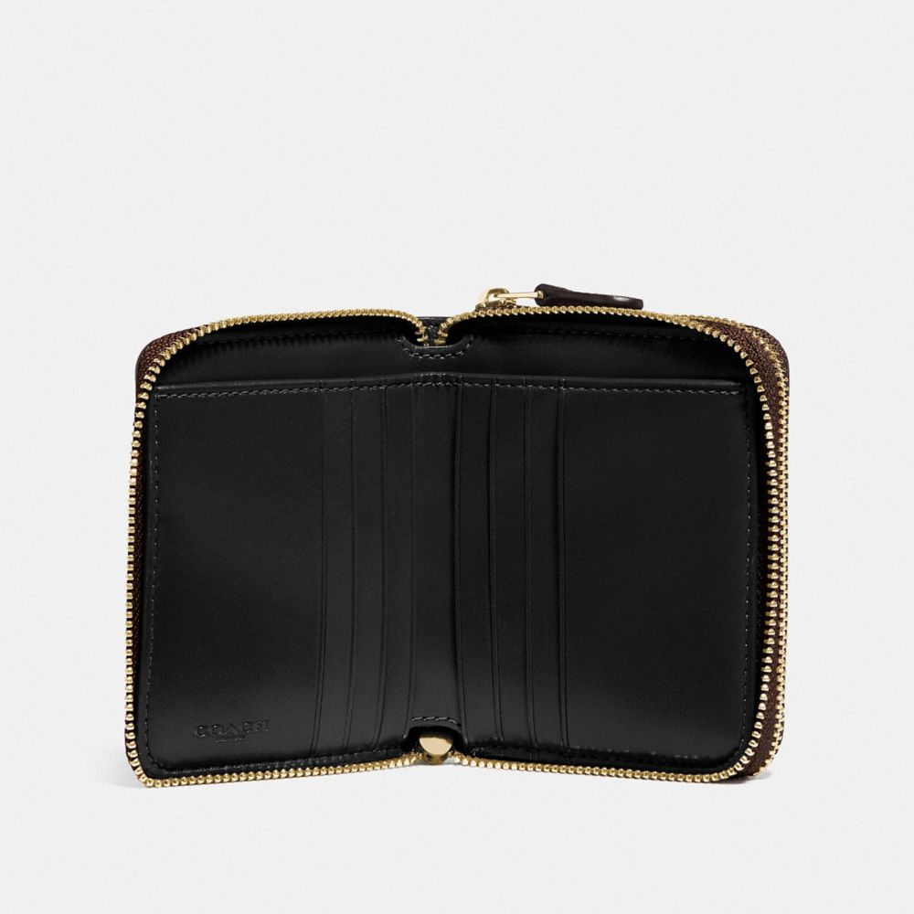 Signature coated canvas and smooth leather| Six credit card slots| Full-length bill compartment| ID window| Snap coin pocket| Double zip closure| 4 1/4" (L) x 3 1/2" (H) x 1 1/4" (W)