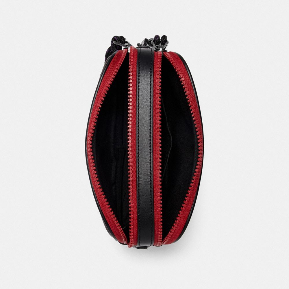 Signature coated canvas with smooth leather details| Two credit card slots| Inside multifunction pocket| Double zip closure, fabric lining| Detachable strap with 23" drop for shoulder or crossbody wear| 7 1/2" (L) x 4 1/2" (H) x 1 1/2" (W)