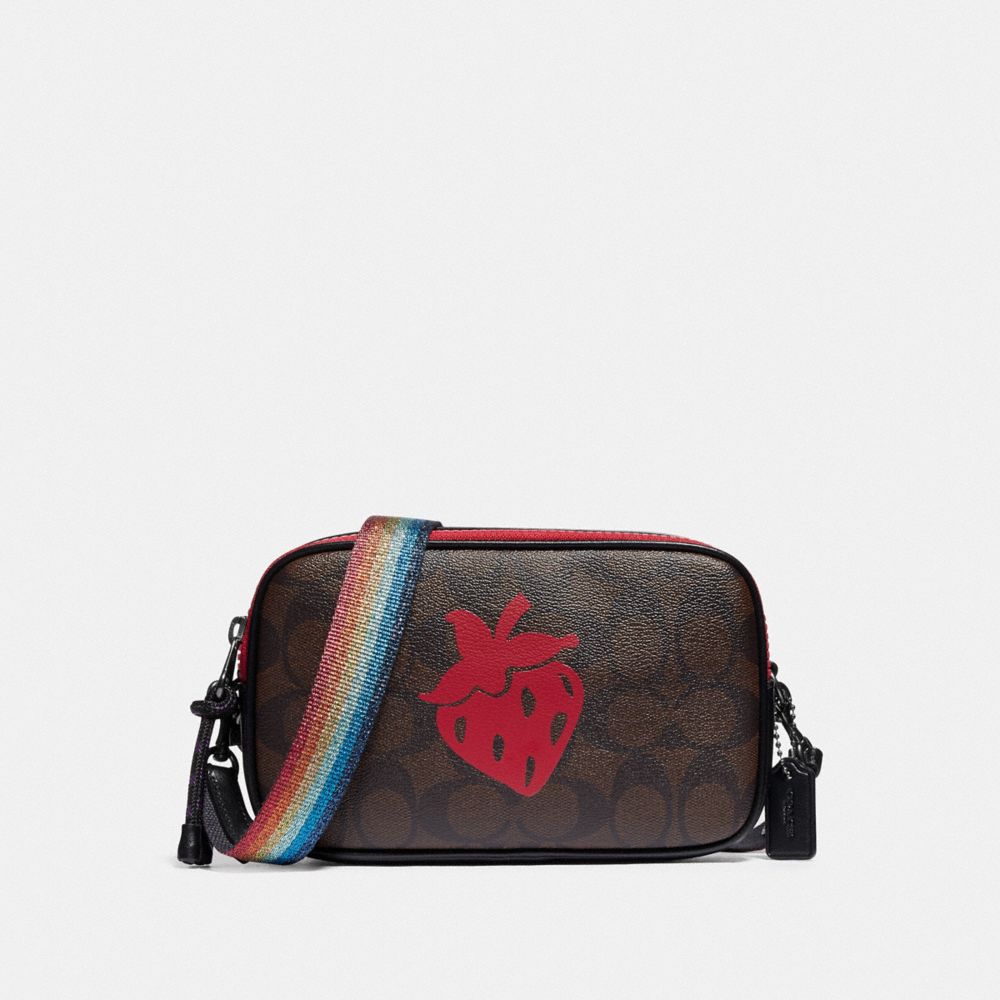 CROSSBODY POUCH IN SIGNATURE CANVAS WITH STRAWBERRY MOTIF