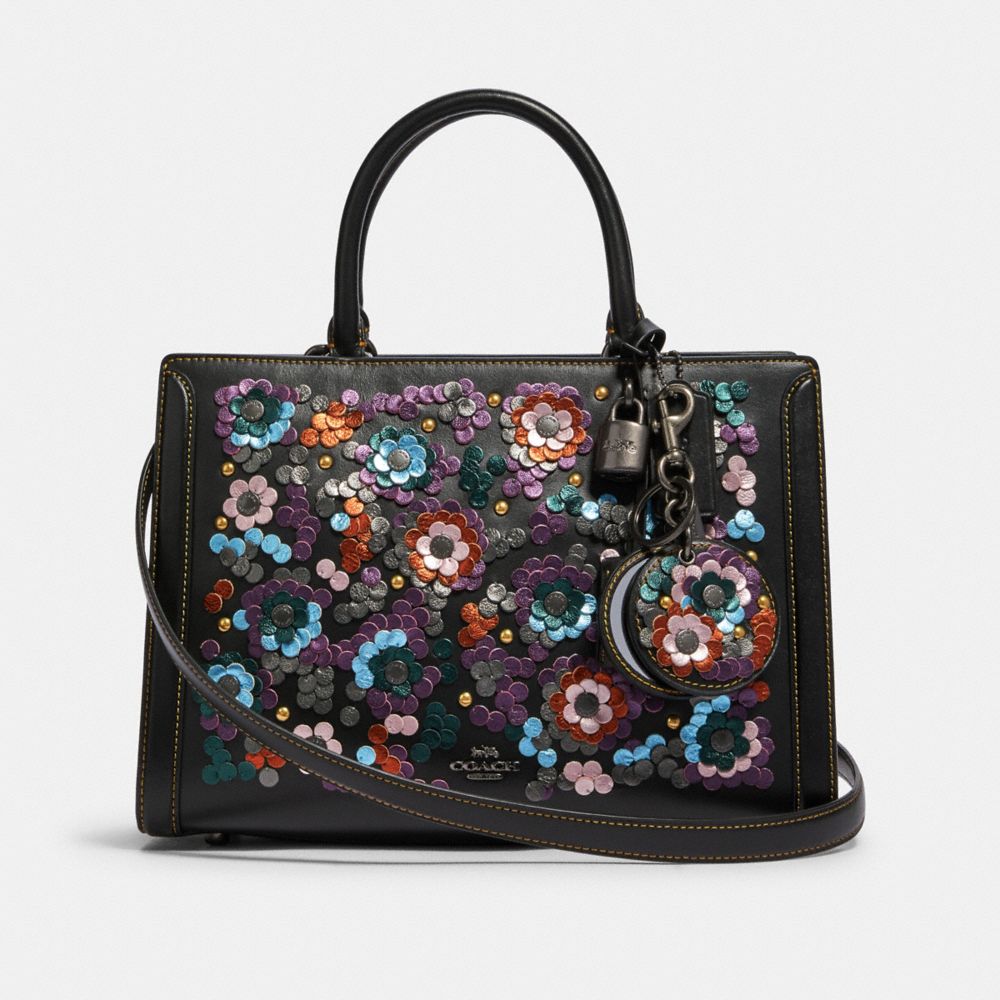 MIRROR BAG CHARM WITH LEATHER SEQUINS