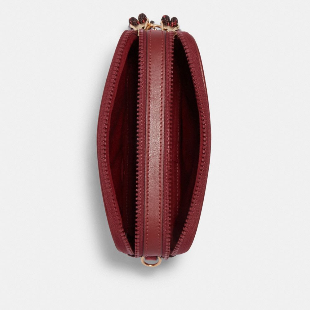 Printed coated canvas with smooth leather details| Two credit card slots| Inside multifunction pocket| Double zip closure, fabric lining| Detachable strap with 23" drop for shoulder or crossbody wear| 7 1/2" (L) x 4 1/2" (H) x 1 1/2" (W) | Featuring the graphics of artist and graphic designer Jay Shells