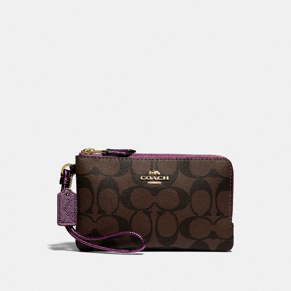 DOUBLE CORNER ZIP WRISTLET IN SIGNATURE CANVAS