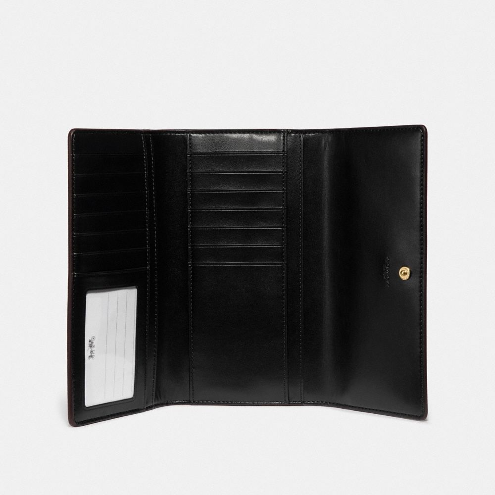 Signature coated canvas and smooth leather| Ten credit card slots| Full-length bill compartment| Zip coin pocket| Snap closure| ID window| 7 3/4" (L) x 4 1/4" (H)