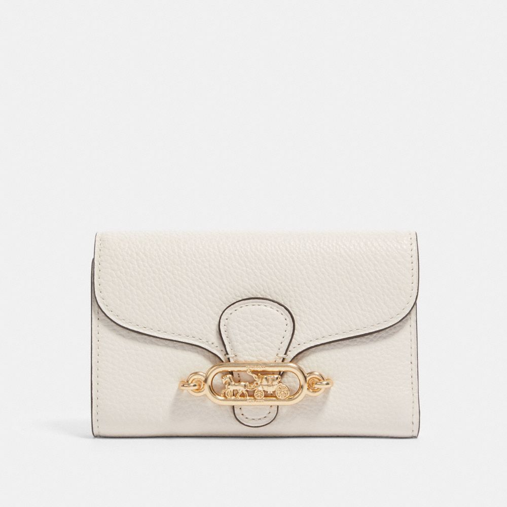 Refined pebble leather| Four credit card slots| Bill compartment| Inside zip coin pocket| Snap closure| Outside open pocket| 6" (L) x 3 3/4" (H) x 3/4" (W)