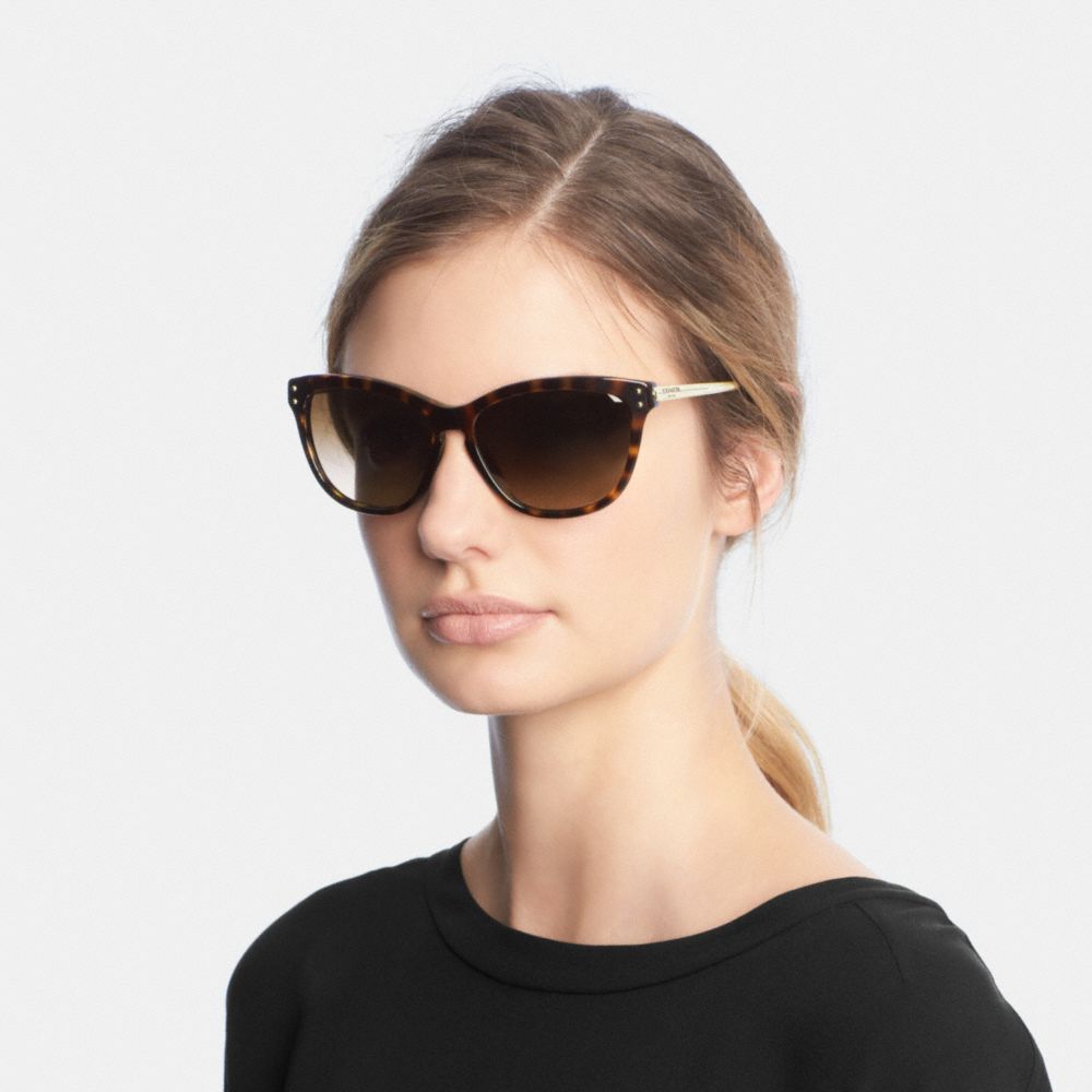 Subtle cat-eye curves make a bold statement on these oversized square frames with gradient lenses. Crafted exclusively for Coach by a premier Italian eyewear maker, the sophisticated design comes finished with refined details like engraving at the temples and a keyhole bridge.