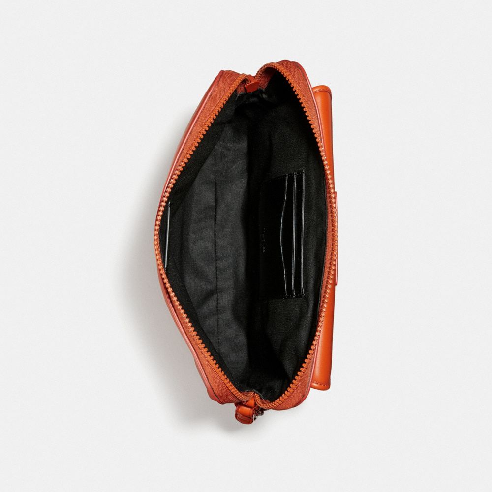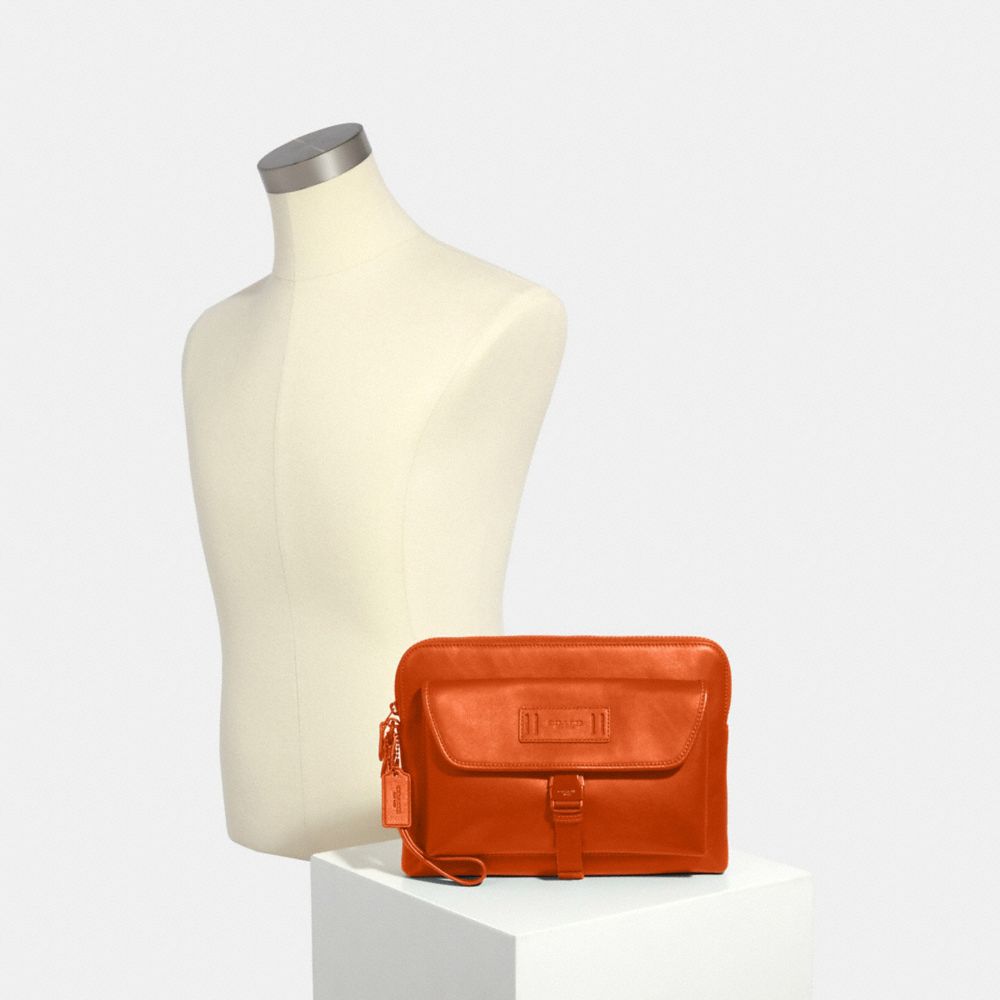 Smooth calf leather| Two credit card slots| Zip closure, fabric lining| Outside pocket with speedclip closure| Attached wrist strap| 10 1/2" (L) x 7 3/4" (H) x 1 3/4" (W)