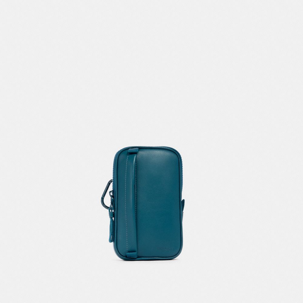 Smooth calf leather| Zip closure, fabric lining| Outside zip pocket| Snap strap keeper| Detachable carabiner clip| 4" (L) x 6 3/4" (H) x 1" (W)