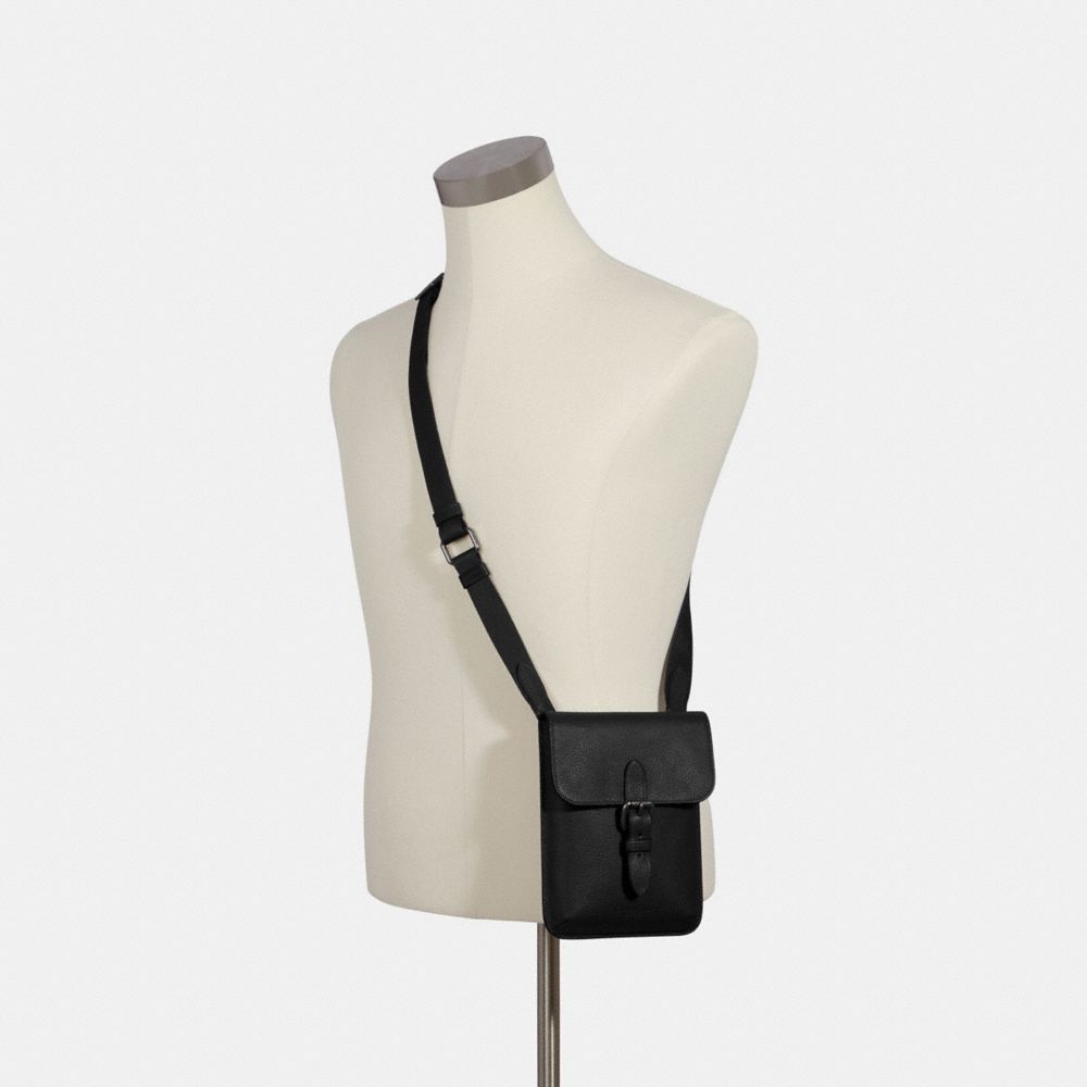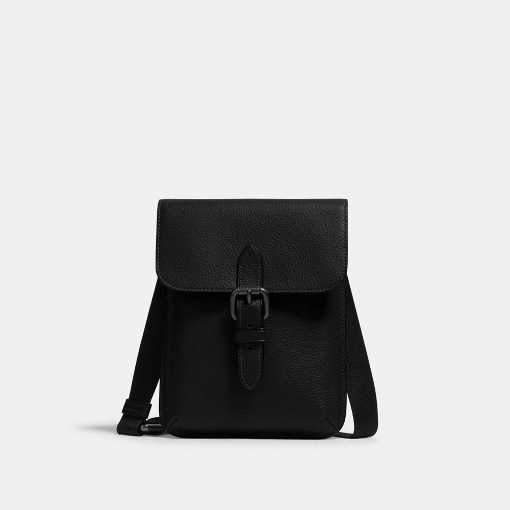 Natural pebble leather| Snap closure, fabric lining| Outside open pocket| Adjustable strap with 25" drop for shoulder or crossbody wear| 6" (L) x 7 3/4" (H) x 3/4" (W)