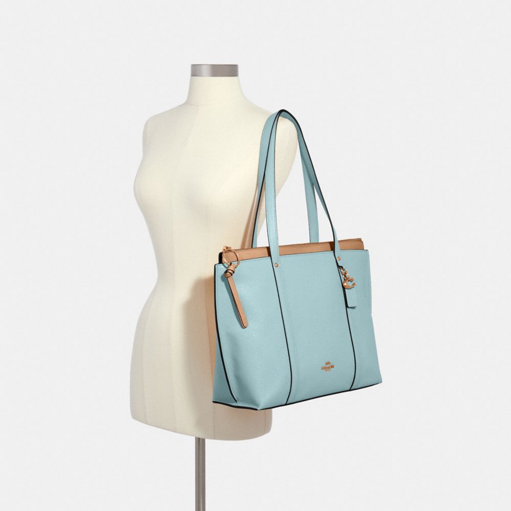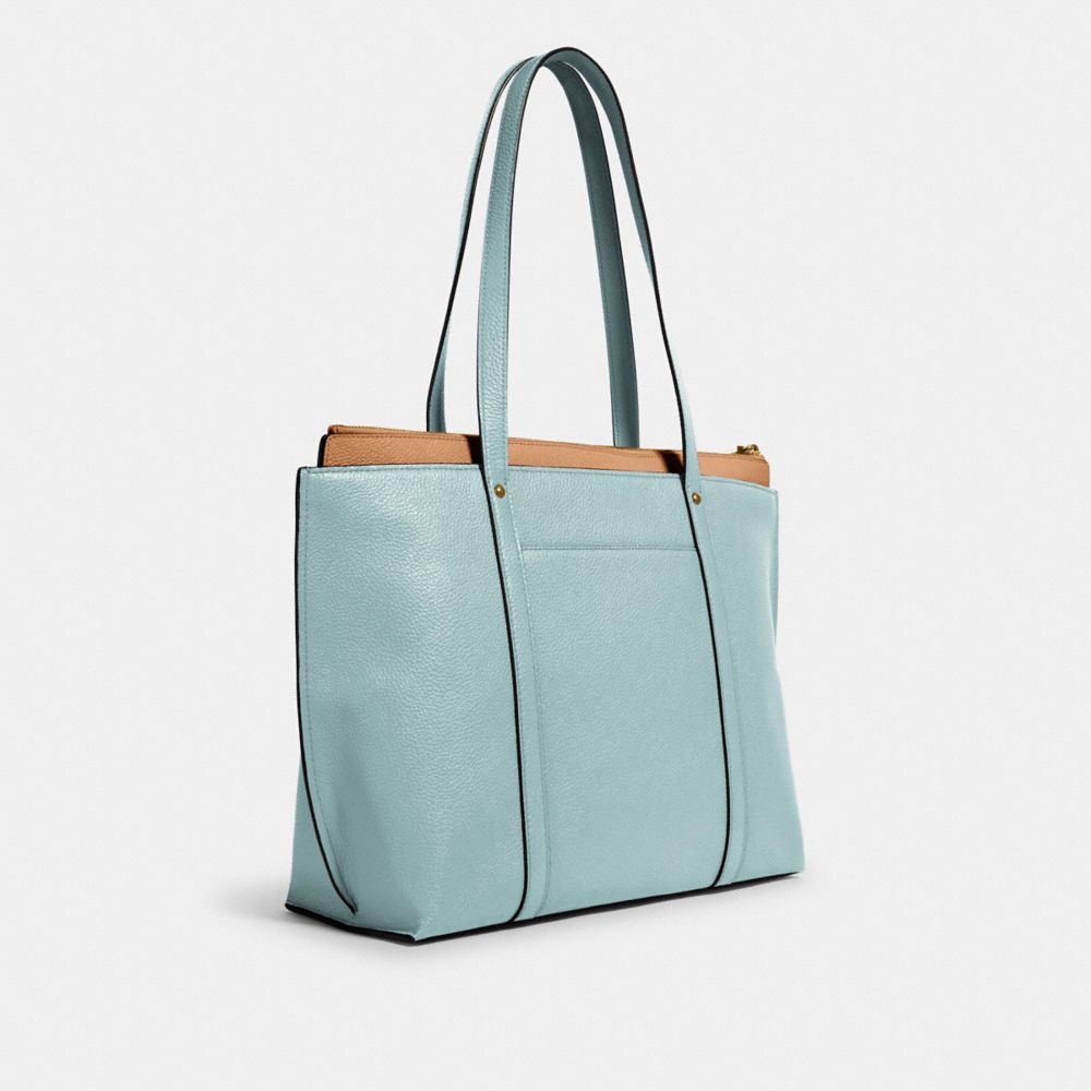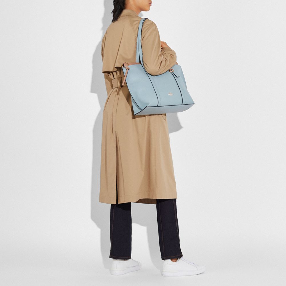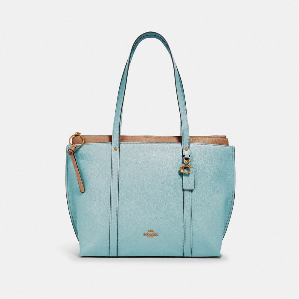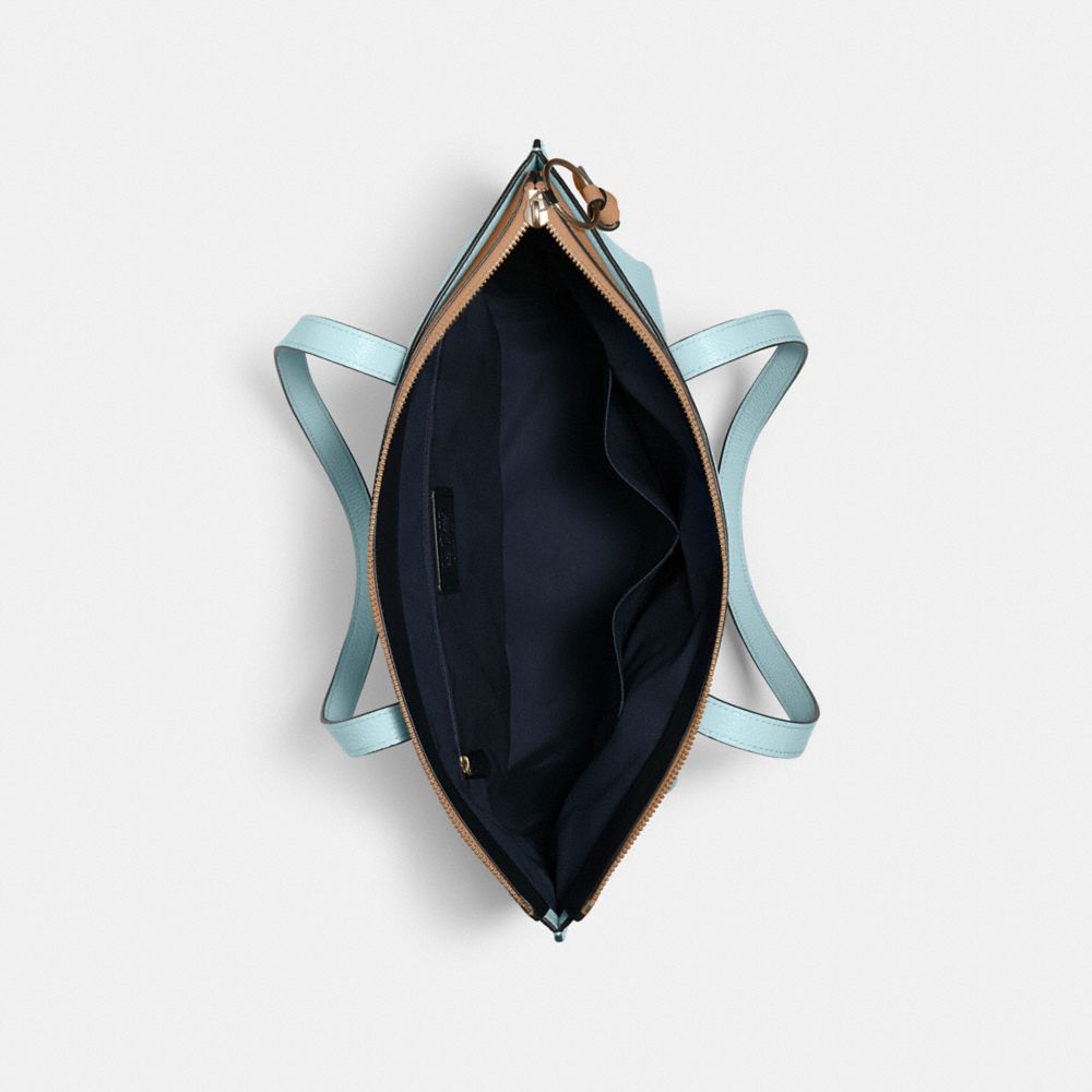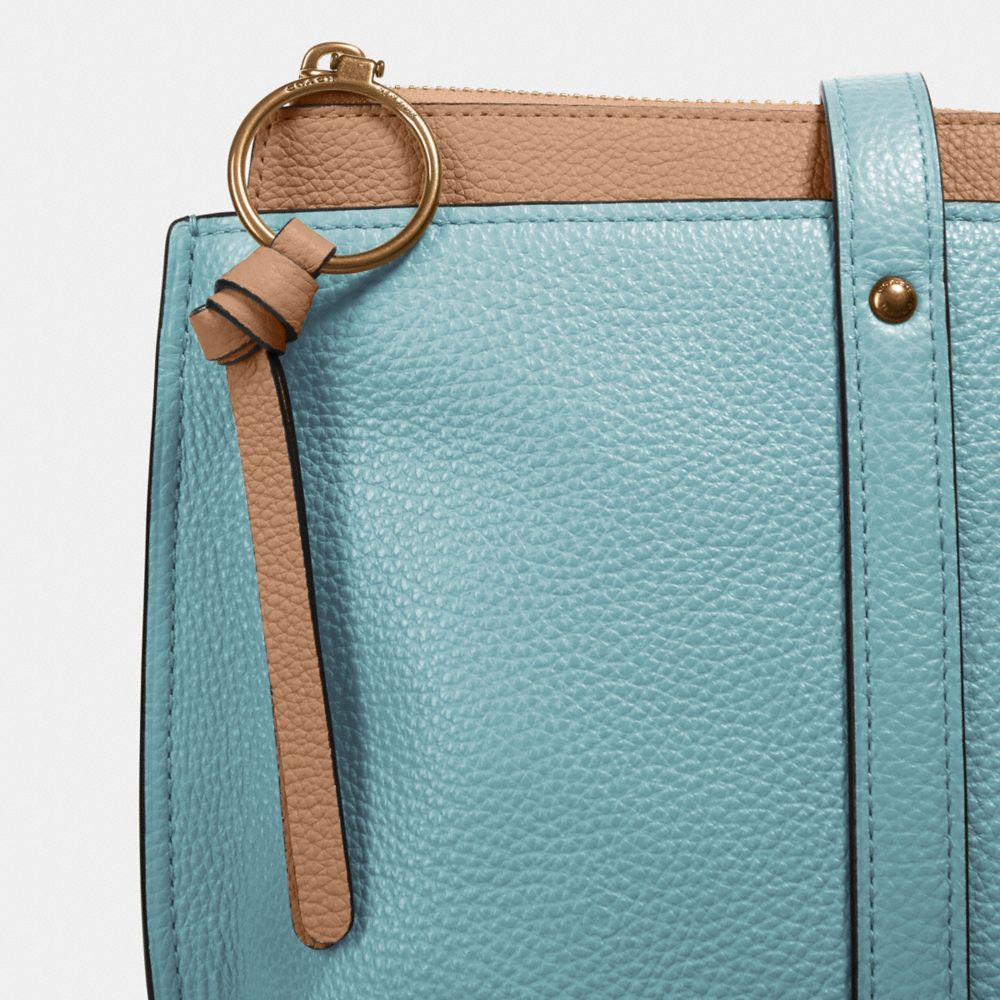 Refined pebble leather| Inside zip, cell phone and multifunction pockets| Zip-top closure, fabric lining| Handles with 10" drop| Outside slip pockets| 13 3/4" (L) x 11 1/2" (H) x 5 3/4" (W)