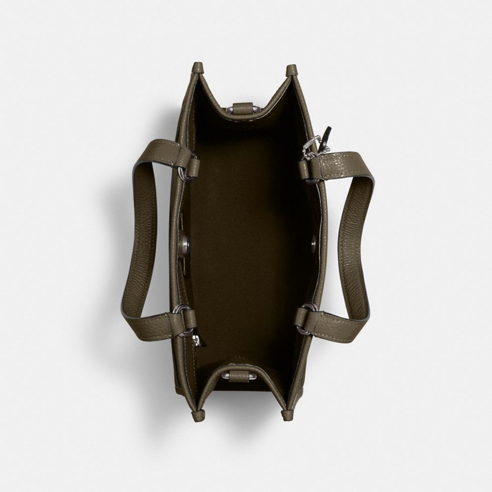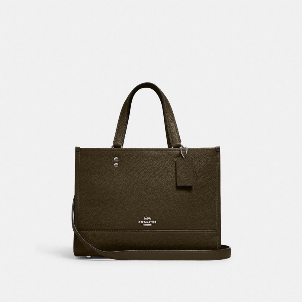 Refined pebble leather| Inside zip, cell phone and multifunction pockets| Snap closure, fabric lining| Handles with 5 1/4" drop| Detachable strap with 20" drop for shoulder or crossbody wear| 11 1/2" (L) x 8 3/4" (H) x 5" (W)