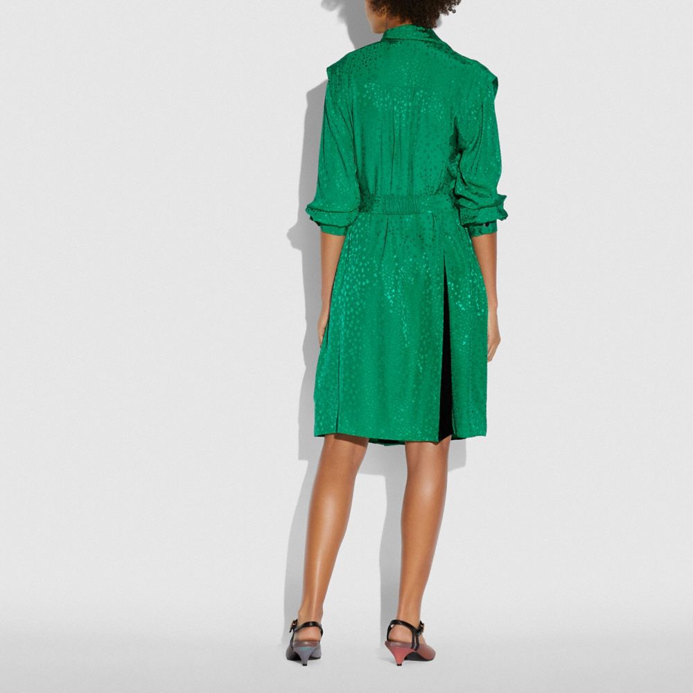 64% viscose, 36% rayon| Snap button closure| Slip pockets| Removable scarf pin| Removable elastic belt| Length: 41"| Dry clean | Model is 5'10" (178cm), chest 31" (79cm), waist 24" (61cm), hips 35" (89cm) and wears a size 2