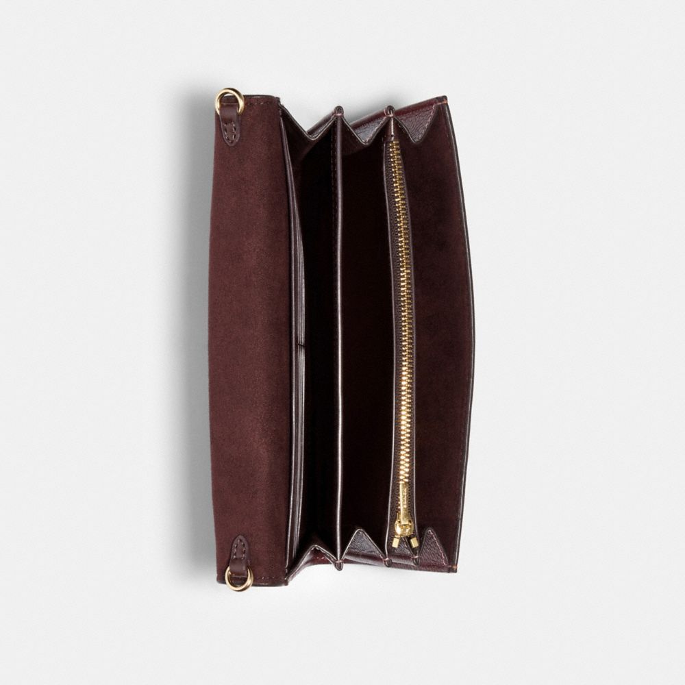 Refined pebble leather| Eight credit card slots| Inside zip and multifunction pockets| Snap closure, fabric lining| Outside slip pocket| Detachable chain strap with 23" drop for shoulder or crossbody wear| 8" (L) x 5 1/2" (H)