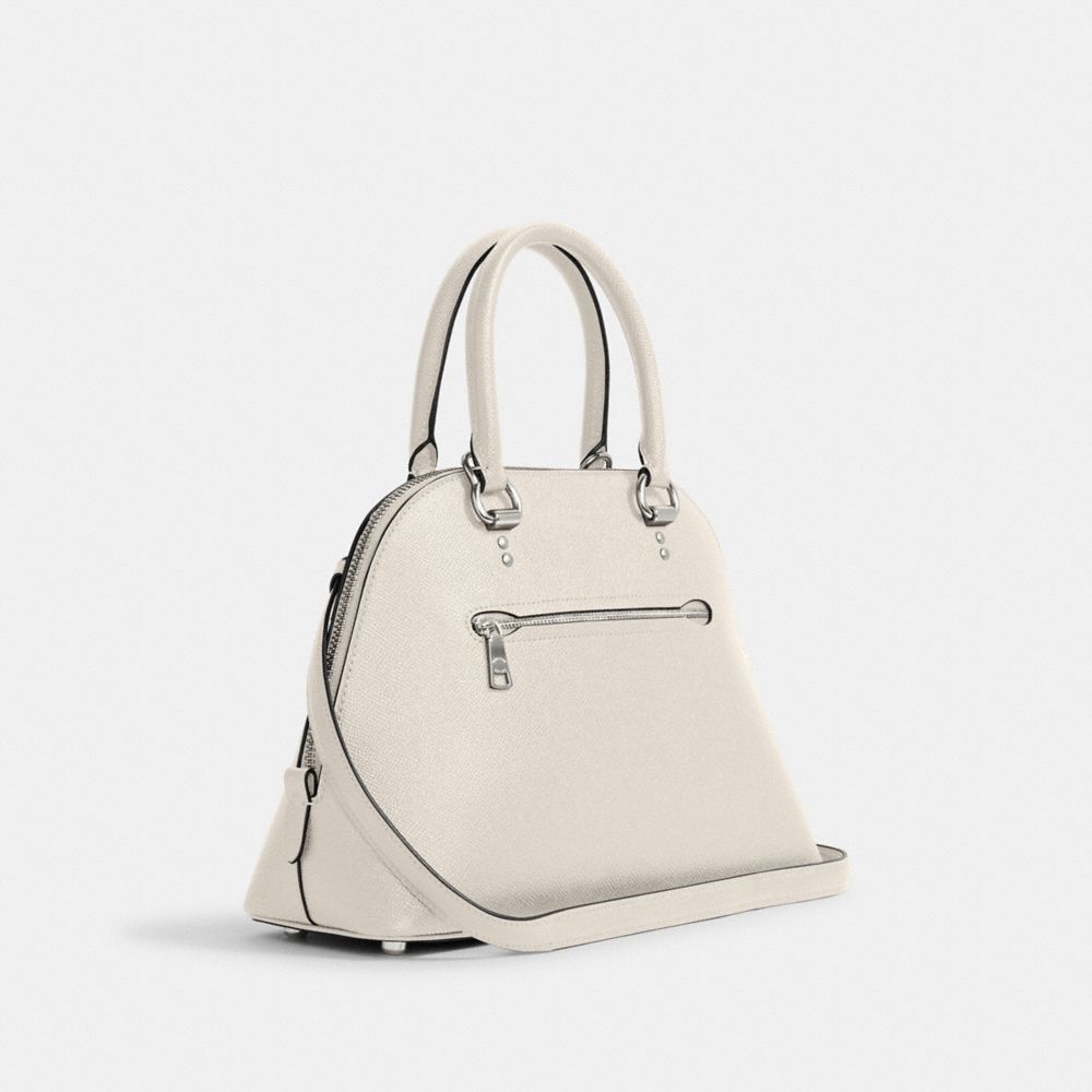 Crossgrain leather| Inside zip pocket| Zip closure, fabric lining| Handles with 3 3/4" drop| Outside zip pocket| Detachable strap with 22" drop for shoulder or crossbody wear| 11 3/4" (L) x 7 3/4" (H) x 4" (W)