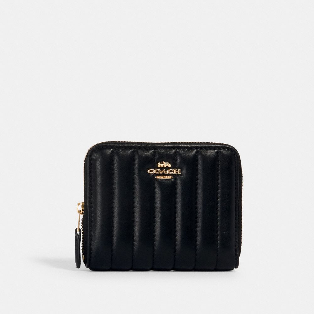 SMALL ZIP AROUND WALLET WITH LINEAR QUILTING