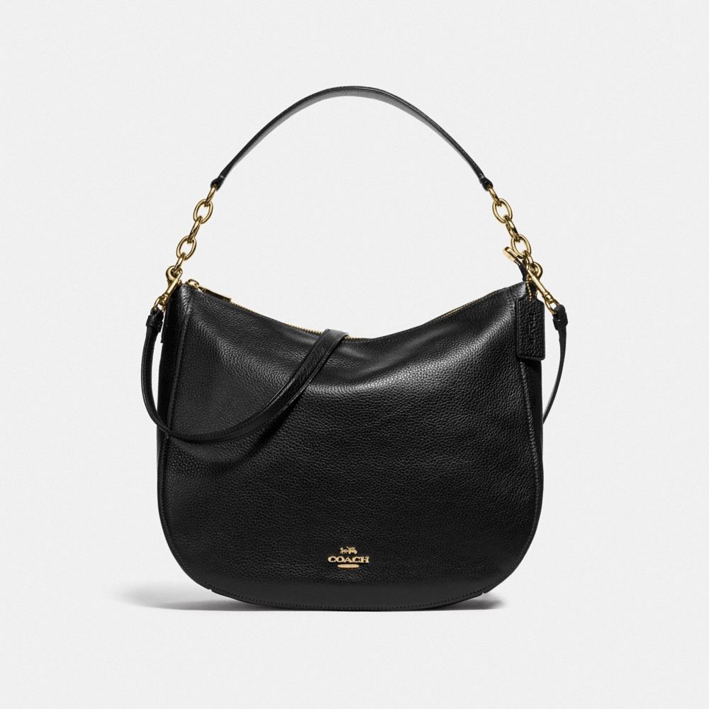 Refined pebble leather| Inside cell phone and multifunction pockets| Zip-top closure, fabric lining| Handle with 8 3/4" drop| Outside zip pocket| Detachable strap with 15 1/4" drop for shoulder wear| 13" (L) x 10 3/4" (H) x 4" (W)