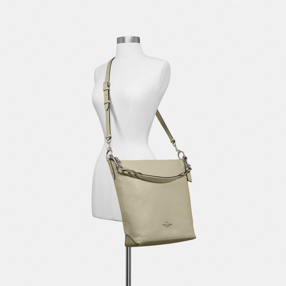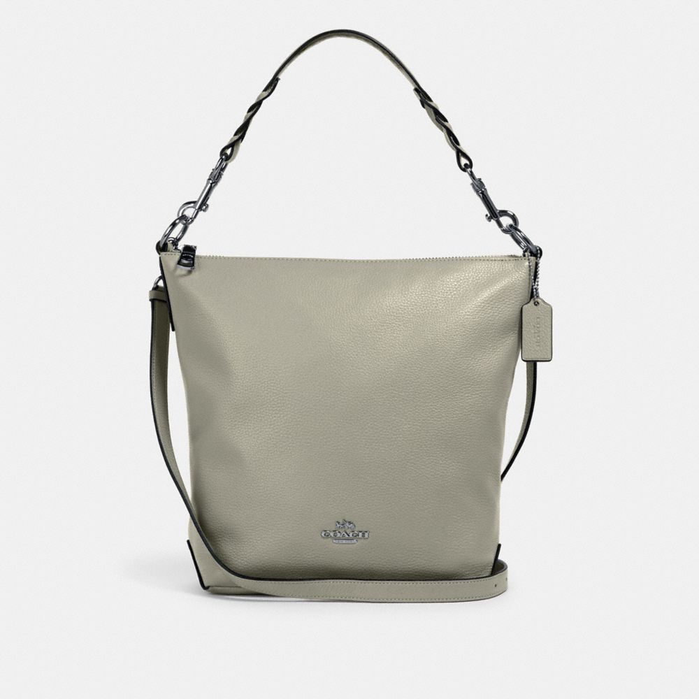 Refined pebble leather| Inside snap pocket| Zip-top closure, fabric lining | Detachable handle with 7 3/4" drop| Outside zip pocket| Detachable strap with 20 1/2" drop for shoulder or crossbody wear| 9 3/4" (L) x 12" (H) x 4" (W)