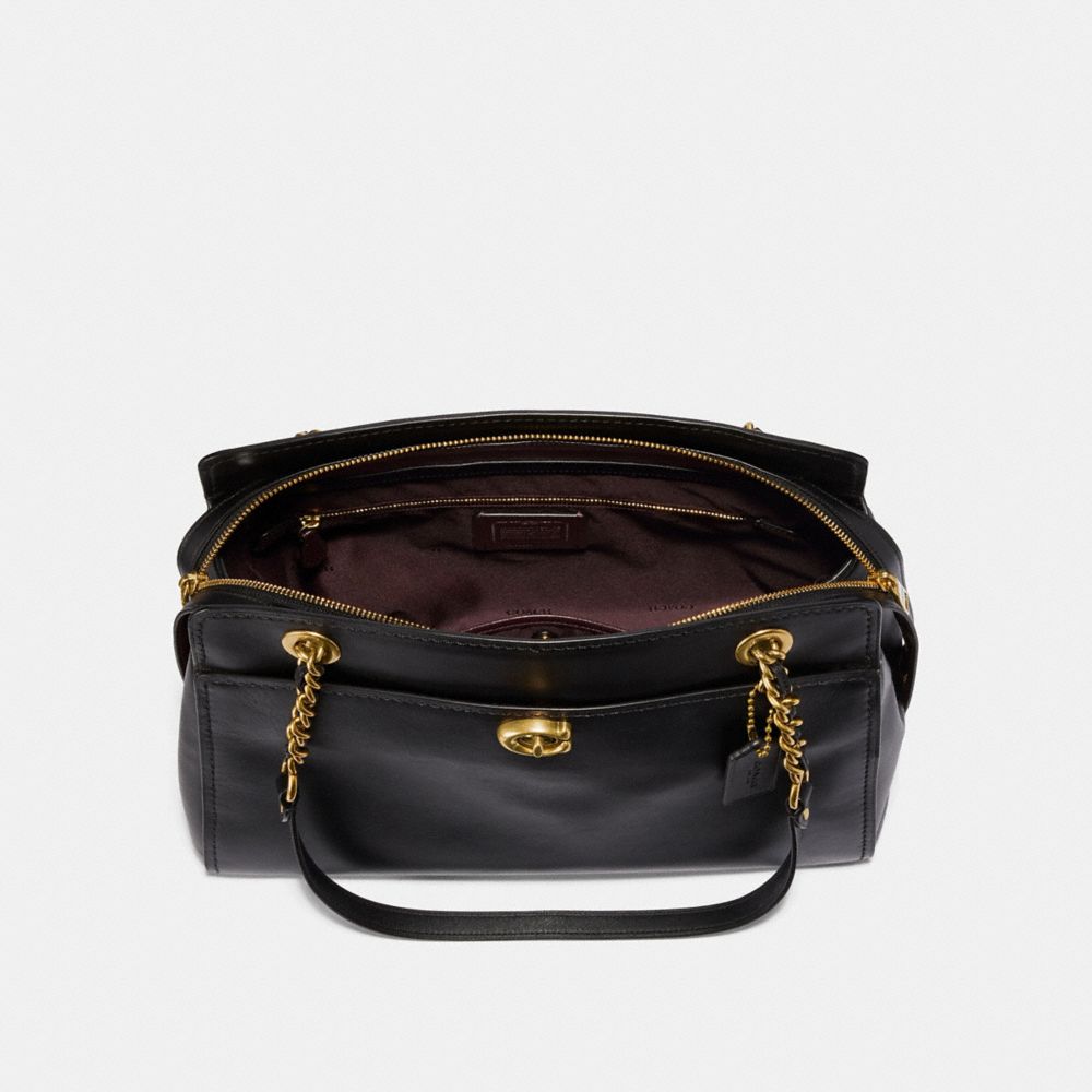 Refined calf leather| Inside zip and snap pockets| Zip closure, fabric lining| Handles with 10 1/4" drop| Outside turnlock pocket| Fits a 13" laptop| 13 3/4" (L) x 9 3/4" (H) x 5 3/4" (W)