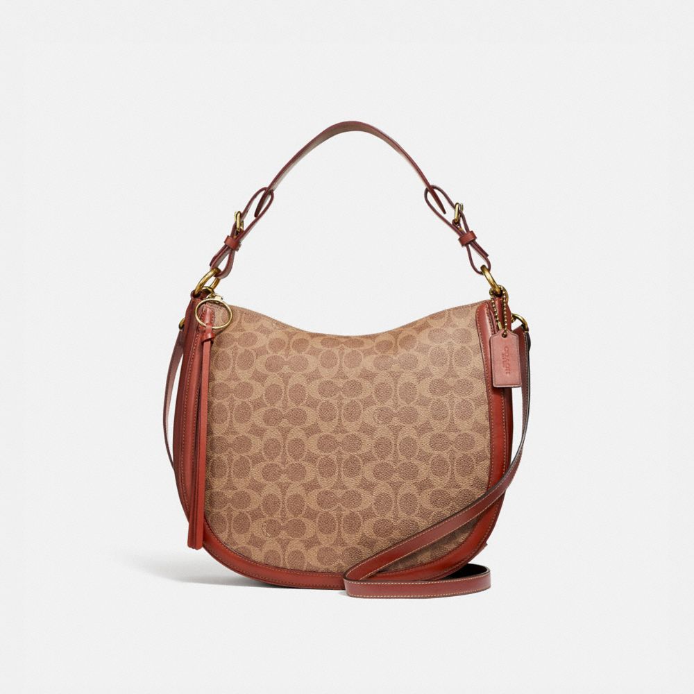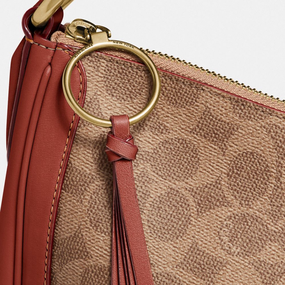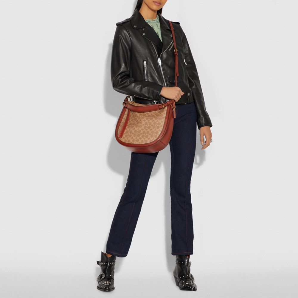 Signature coated canvas and refined calf leather| Inside zip, cell phone and multifunction pockets| Zip-top closure, fabric lining| Handle with 7 3/4" drop| Outside zip pocket| Detachable strap with 22" drop for shoulder or crossbody wear| Instantly change the look of your bag with an interchangeable strap.| 12 1/2" (L) x 10 1/2" (H) x 3 1/2" (W)