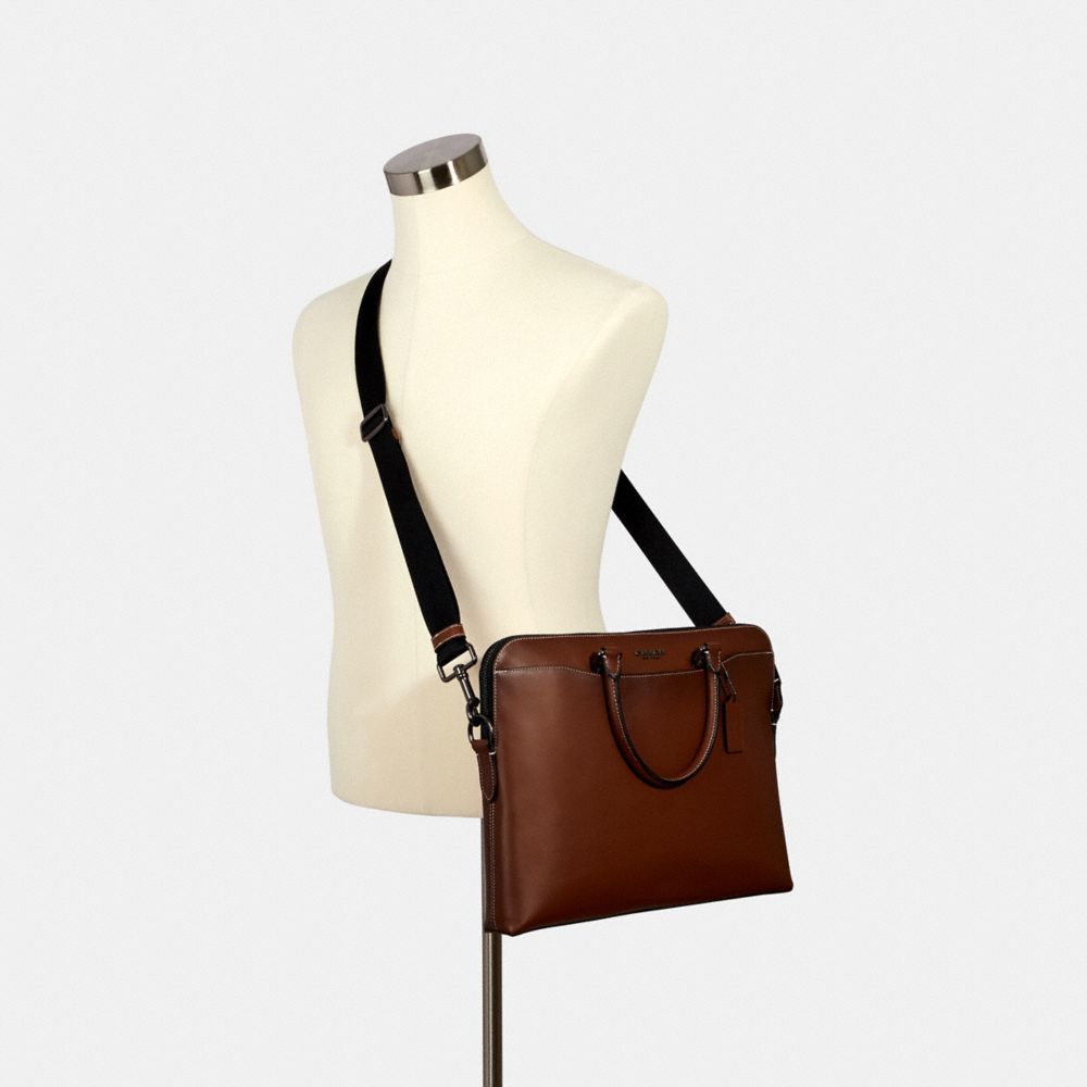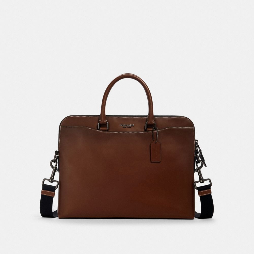 Burnished refined calf leather| Inside zip, cell phone and multifunction pockets| Zip closure, fabric lining| Handles with 5" drop| Outside magnetic snap pockets| Detachable strap with 25" drop for shoulder or crossbody wear| 14 3/4" (L) x 11 1/4" (H) x 2" (W)