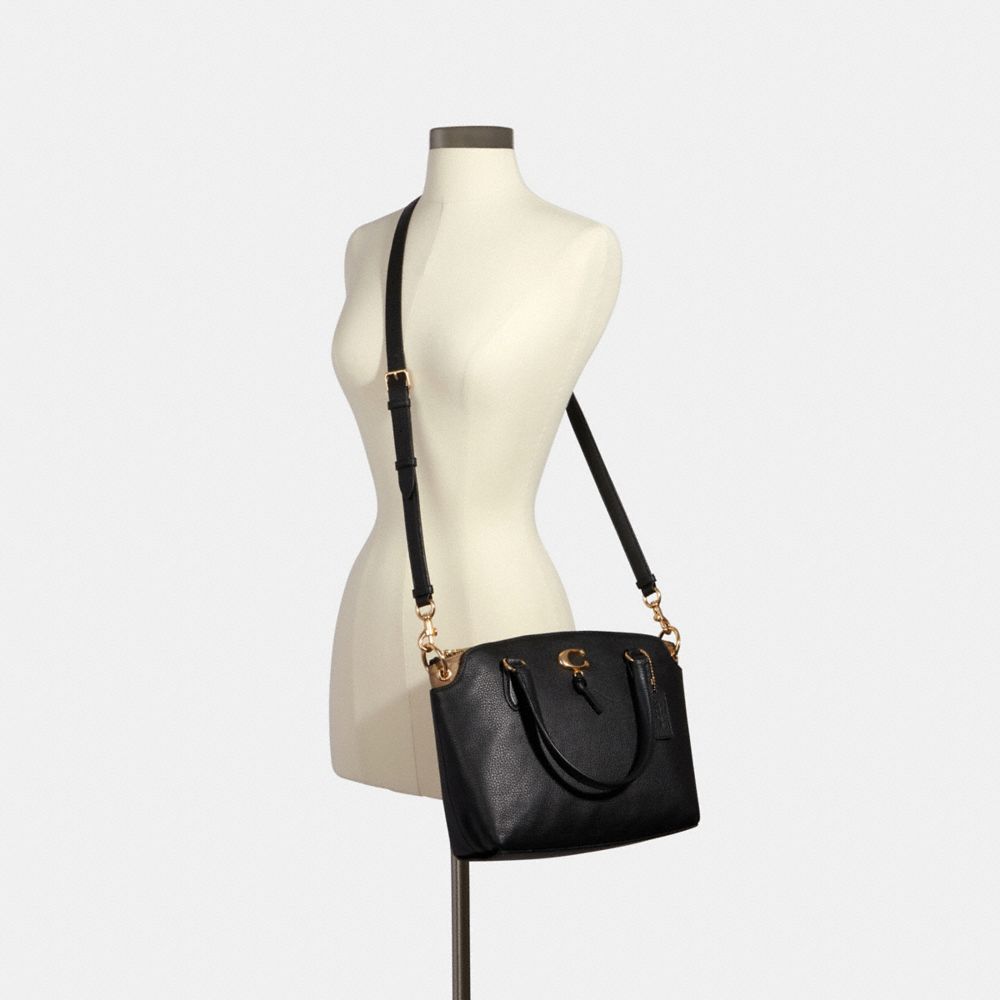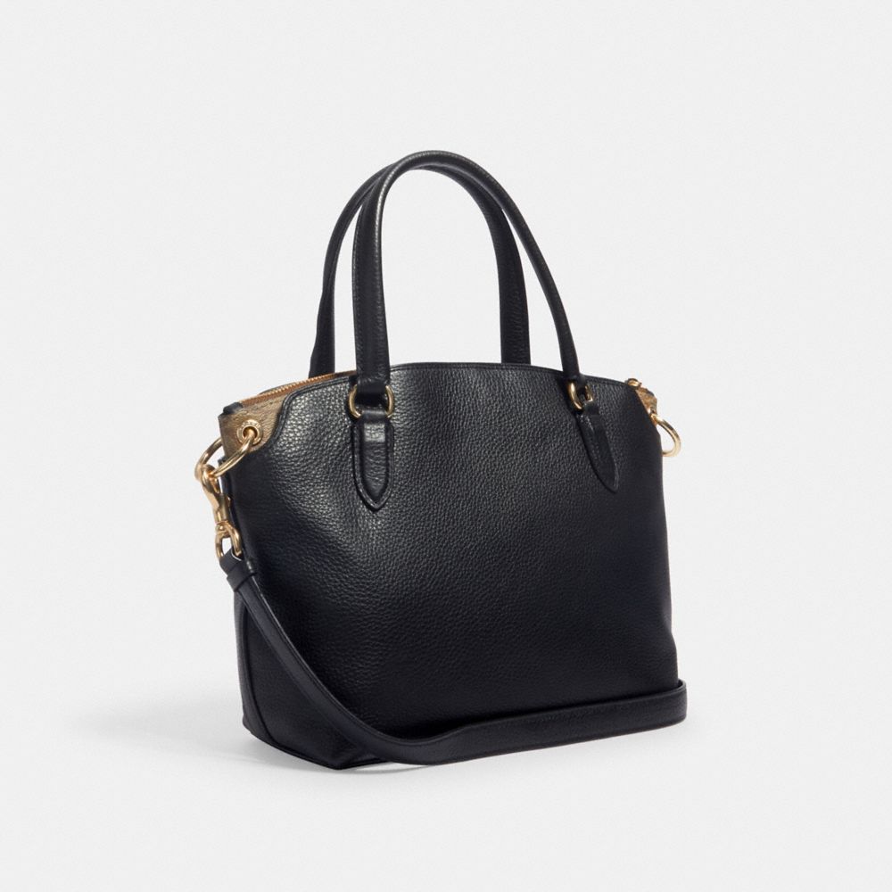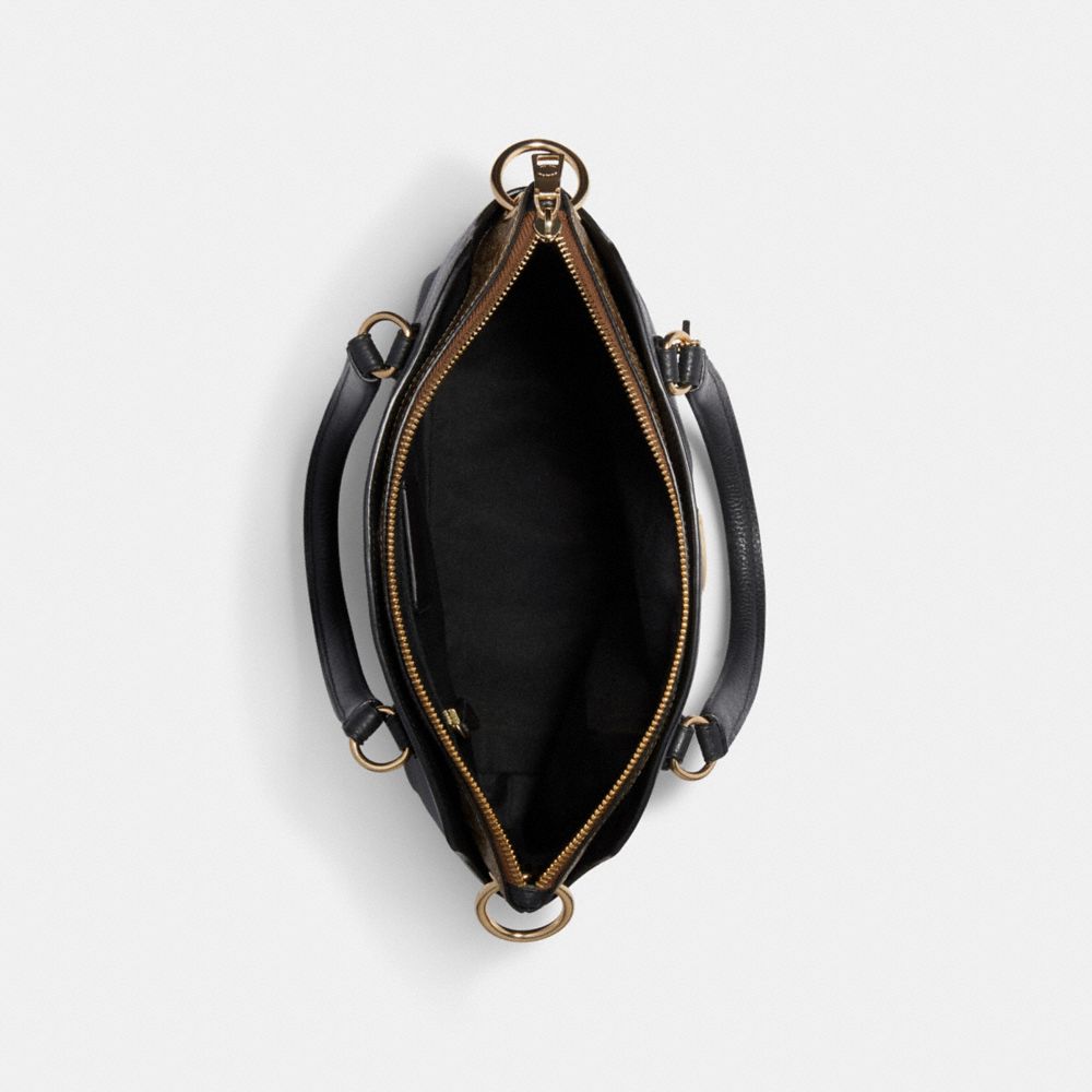 Refined pebble leather and Signature coated canvas| Inside zip pocket| Zip-top closure, fabric lining| Handles with 4 3/4" drop| Outside magnetic snap pockets| Detachable strap with 20 3/4" drop for shoulder or crossbody wear| 10" (L) x 8 1/4" (H) x 4 1/4" (W)
