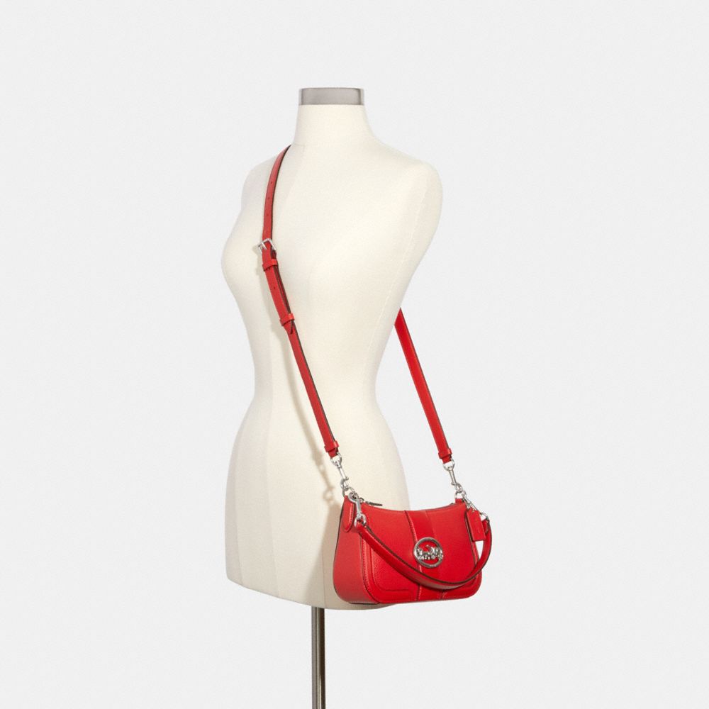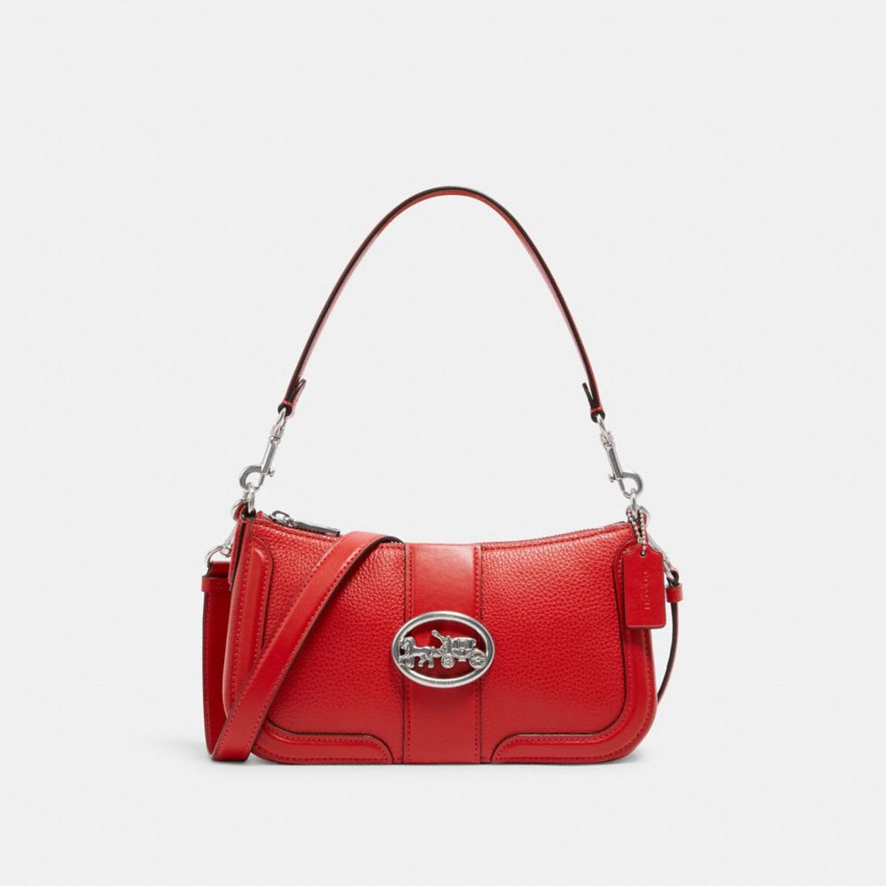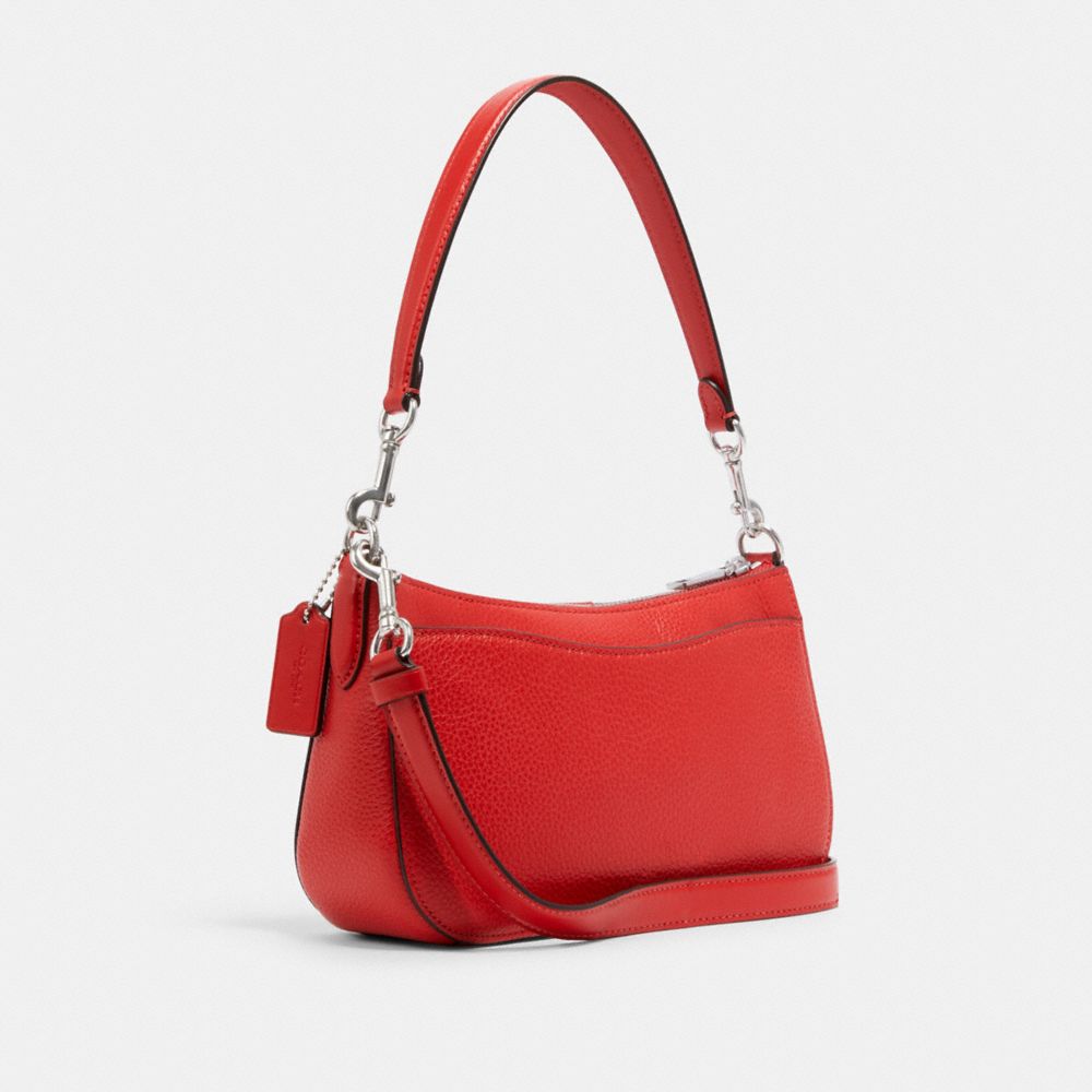 Refined pebble leather and smooth leather| Inside multifunction pocket| Zip-top closure, fabric lining| Detachable handle with 8 1/4" drop| Outside open pocket| Detachable strap with 23" drop for shoulder or crossbody wear| 9 3/4" (L) x 5 3/4" (H) x 2 1/2" (W)