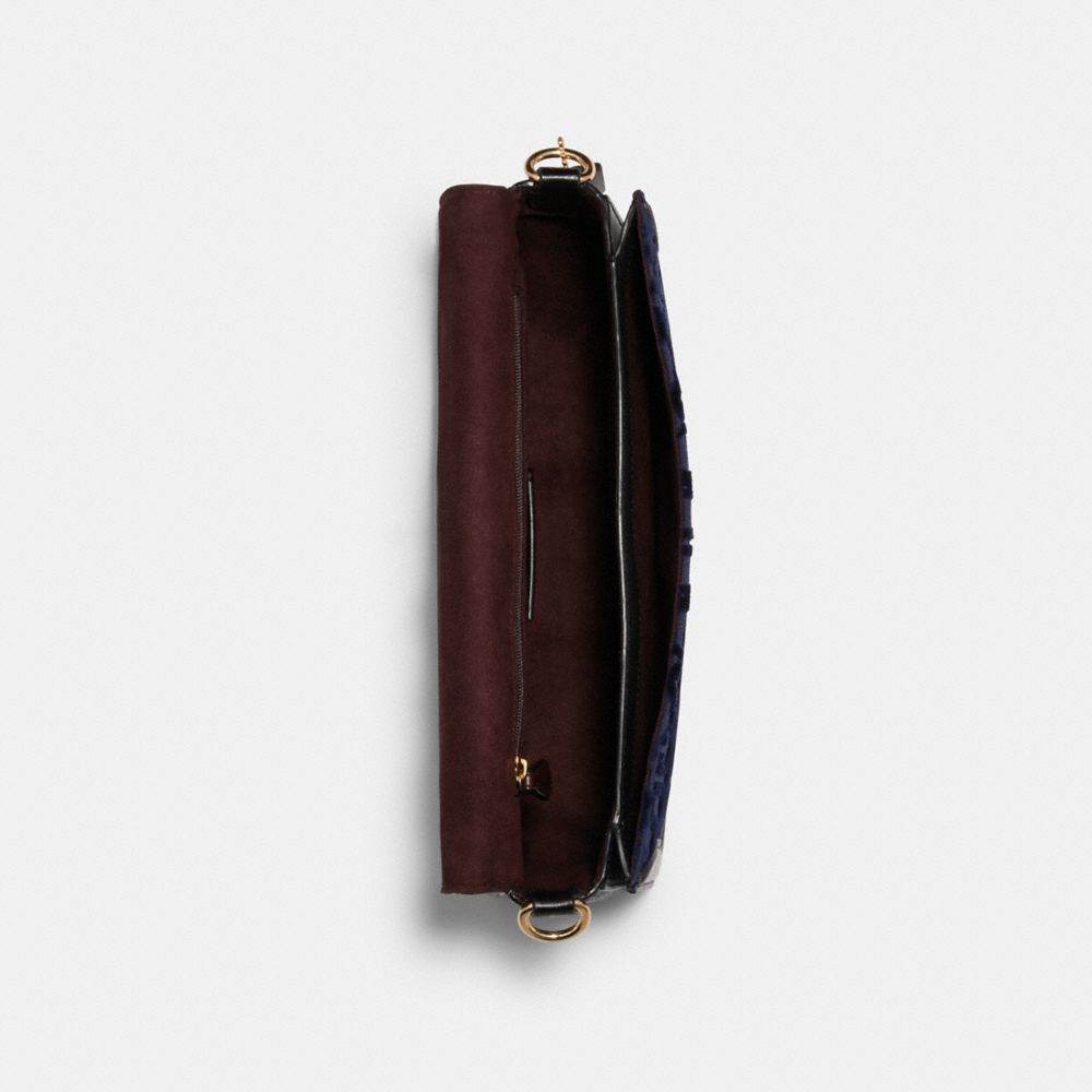 Signature velvet, smooth leather and refined pebble leather| Inside zip pocket| Snap closure, fabric lining| Detachable handle with 9" drop| Outside open pocket| Detachable strap with 22" drop for shoulder or crossbody wear| 10 3/4" (L) x 5 1/2" (H) x 2 3/4" (W)