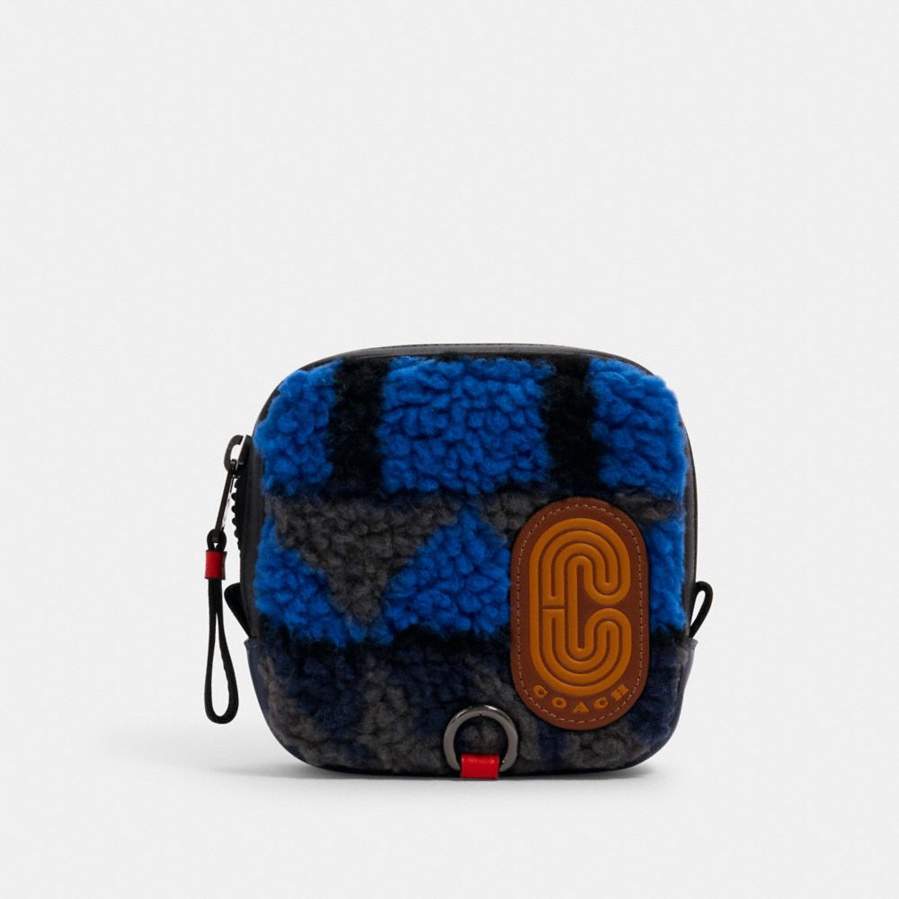 SQUARE HYBRID POUCH WITH GEO PRINT AND COACH PATCH