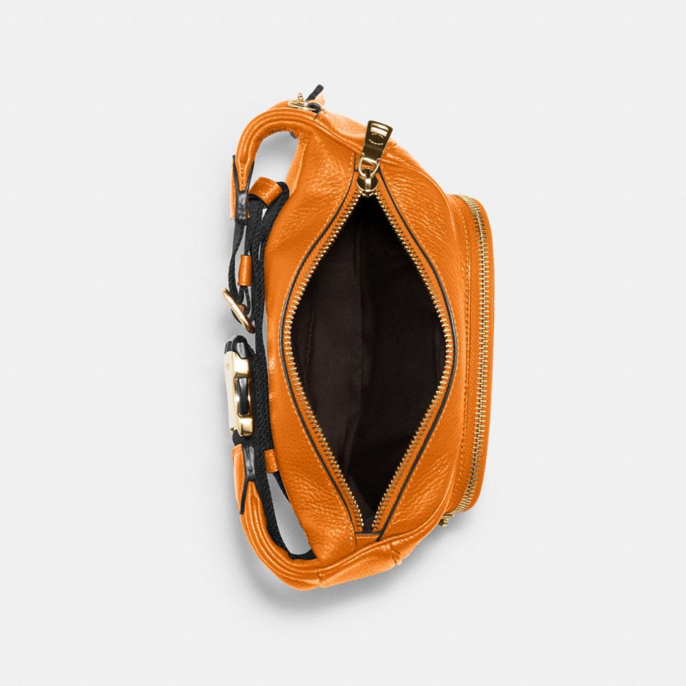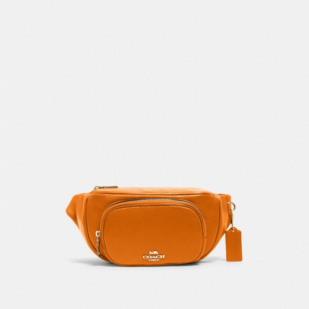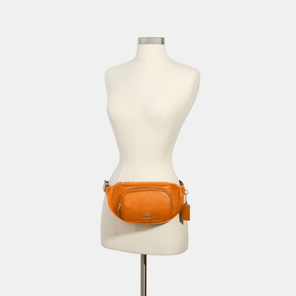 Refined pebble leather| Inside multifunction pocket| Zip closure, fabric lining| Outside zip pocket| Adjustable strap for wear at waist| 9 1/4" (L) x 5" (H) x 1 3/4" (W)