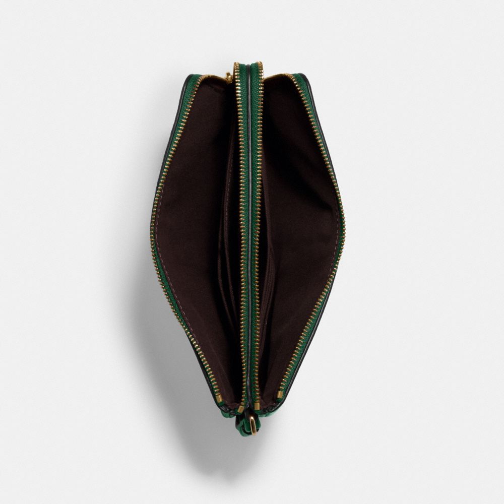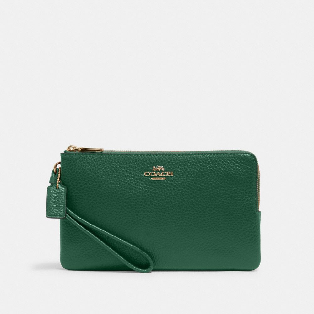 Refined pebble leather| Six credit card slots| Full-length bill compartment| Inside open pockets| Double zip closure, fabric lining| Wrist strap attached| 8 1/2" (L) x 4 1/2" (H) x 1 1/4" (W)| Fits all phone sizes up to an iPhone X and Samsung S7 Edge