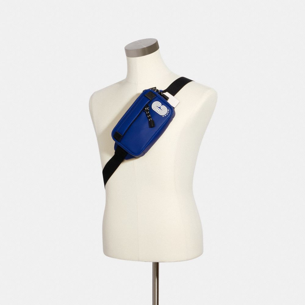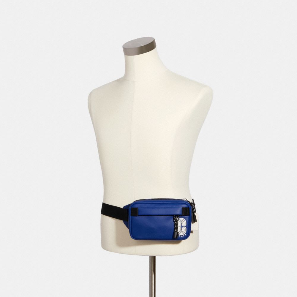 Smooth calf leather| Inside multifunction pocket| Zip-top closure, fabric lining| Outside zip pocket| Adjustable strap for wear at waist| 7" (L) x 4 1/4" (H) x 1 3/4" (W)