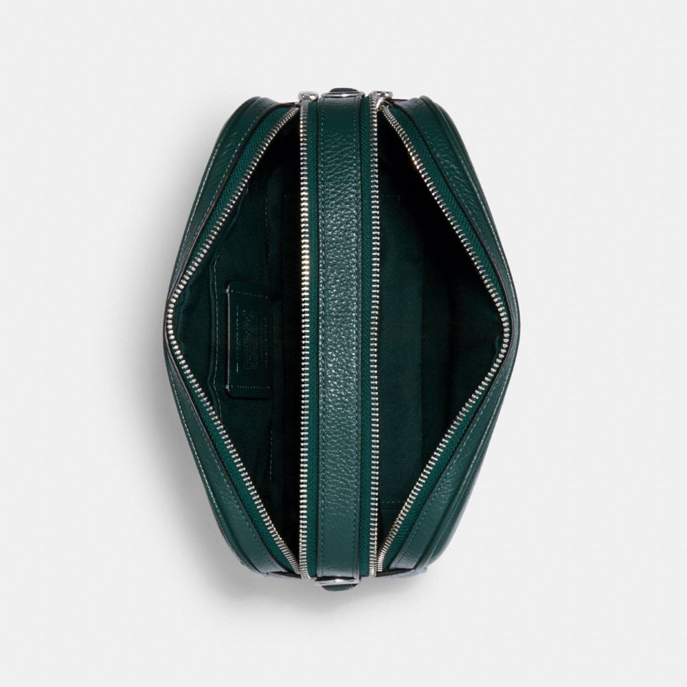 Refined pebble leather| Inside multifunction pocket| Double zip closure, fabric lining| Outside slip pocket| Detachable strap with 22" drop for shoulder or crossbody wear| 9 3/4" (L) x 6 1/4" (H) x 3 1/2" (W)