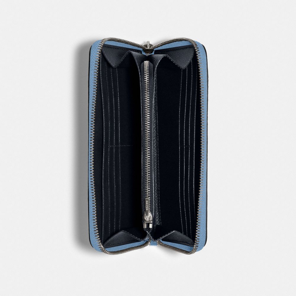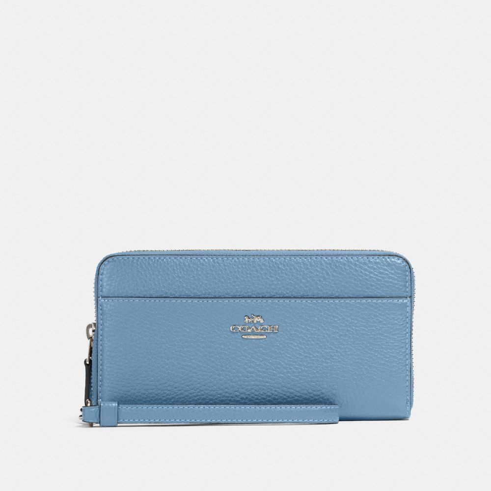 Polished pebble leather| 12 credit card slots| Full-length bill compartments| Zip coin pocket| Zip-around closure| Outside open pocket| Wrist strap attached| 7 1/2" (L) x 4" (H) x 3/4" (W)| Fits all phone sizes up to an iPhone X and Samsung S7 Edge