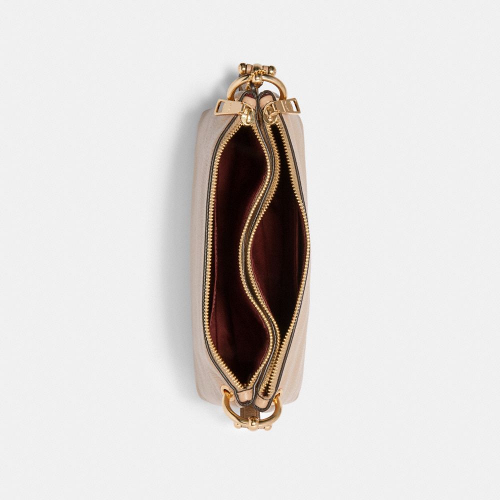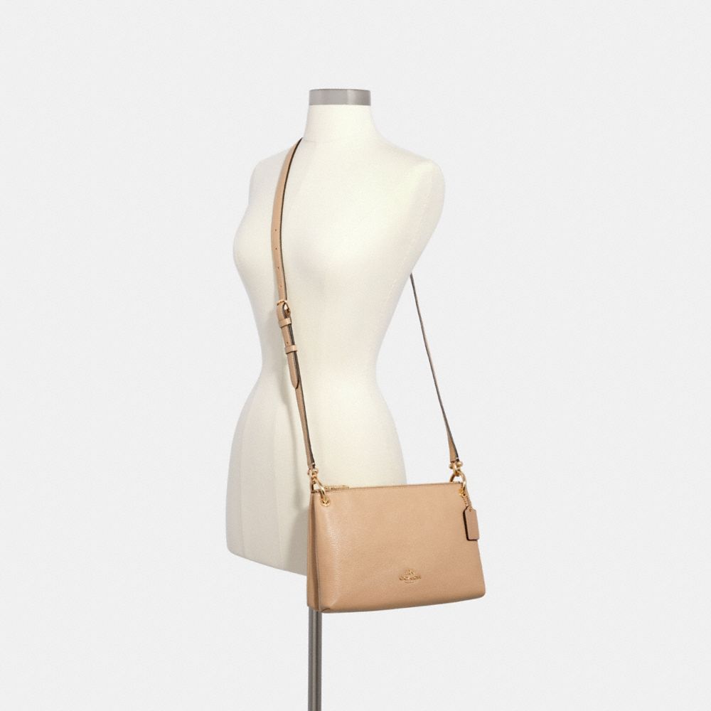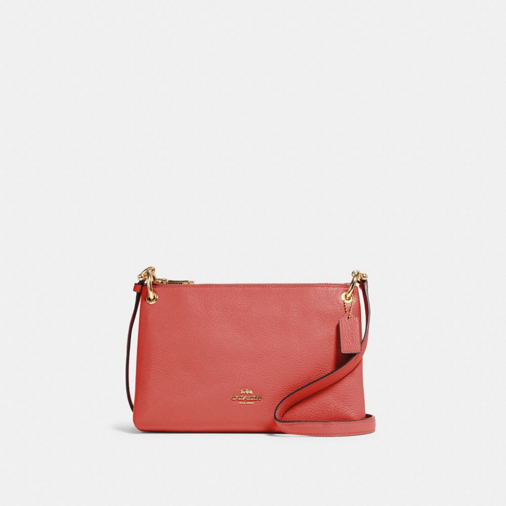 Refined pebble leather| Two credit card slots| Inside multifunction pocket| Center snap compartment| Double zip closure, fabric lining| Adjustable strap with 22 3/4" drop for shoulder or crossbody wear| 9 3/4" (L) x 6 3/4" (H) x 2 3/4" (W)
