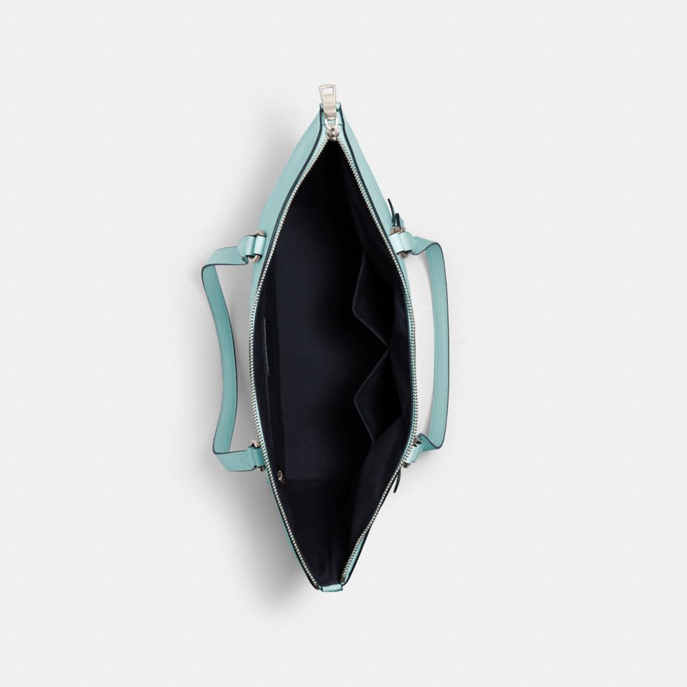 Crossgrain leather| Inside zip, cell phone and multifunction pockets| Zip-top closure, fabric lining| Handles with 10 1/4" drop| Outside zip pocket| 12 3/4" (L) x 10 1/2" (H) x 5 1/2" (W)