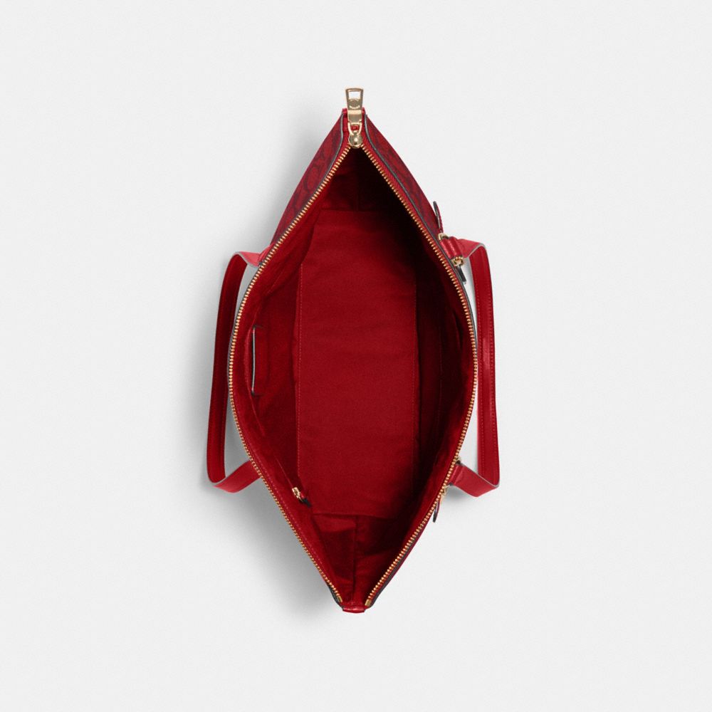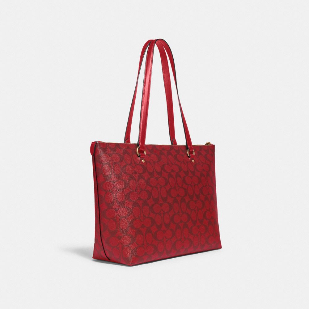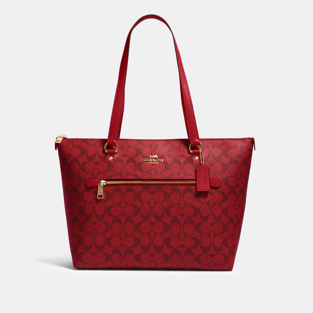 Signature coated canvas and smooth leather| Inside zip, cell phone and multifunction pockets| Zip-top closure, fabric lining| Handles with 10 1/4" drop| Outside zip pocket| 12 3/4" (L) x 10 1/2" (H) x 5 1/2" (W)