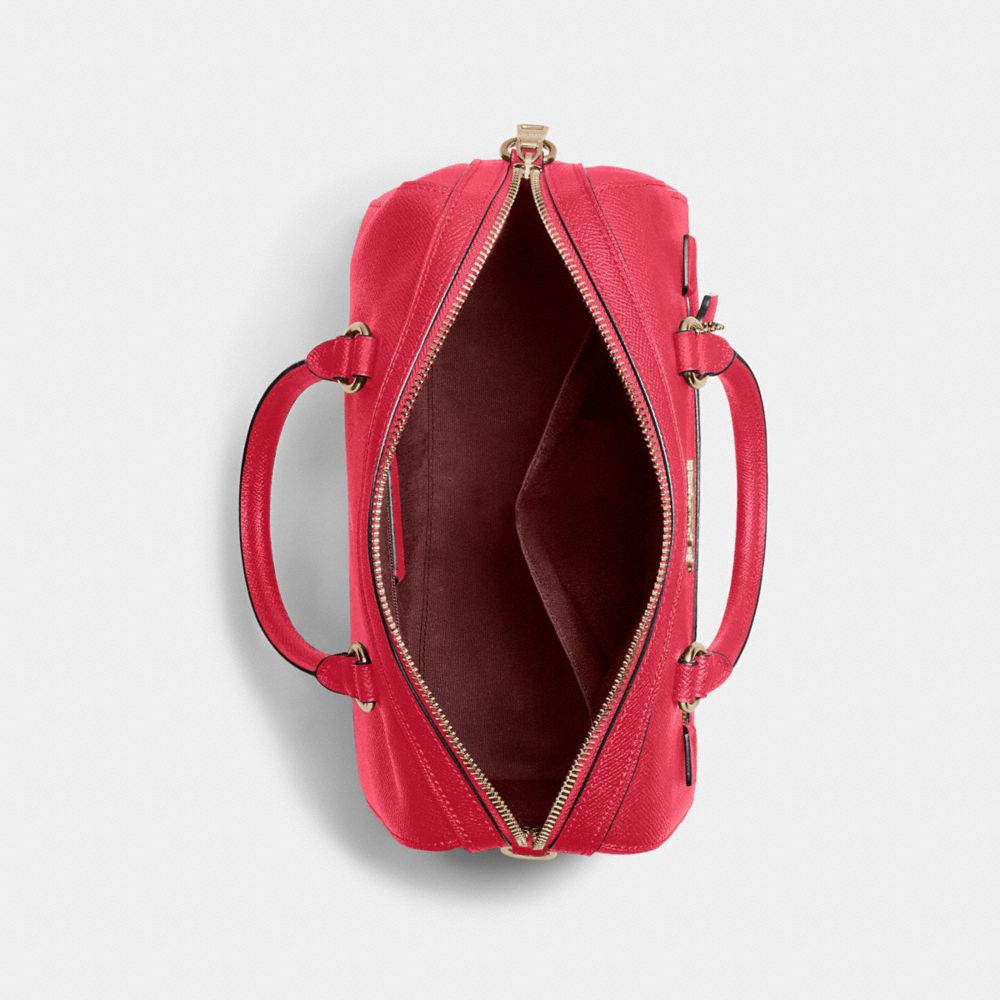 Crossgrain leather| Inside zip and multifunction pockets| Zip closure, fabric lining| Handles with 4 1/4" drop| Outside zip pocket| Detachable strap with 23" drop for shoulder or crossbody wear| 10 1/2" (L) x 6 1/4" (H) x 5 1/2" (W)