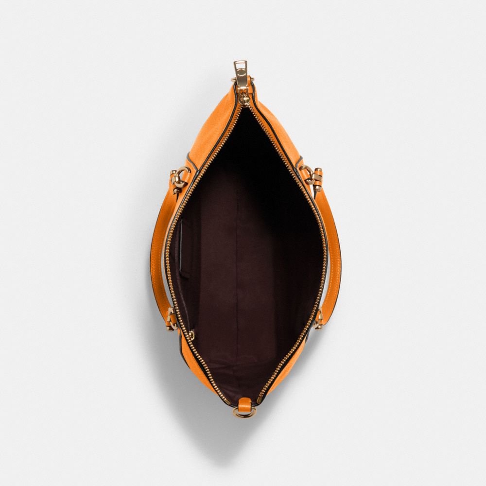 Refined pebble leather| Inside zip pocket| Zip-top closure, fabric lining| Handles with 5" drop| Outside zip pocket| Detachable strap with 21" drop for shoulder or crossbody wear| 10 1/2" (L) x 8 3/4" (H) x 3 3/4" (W)