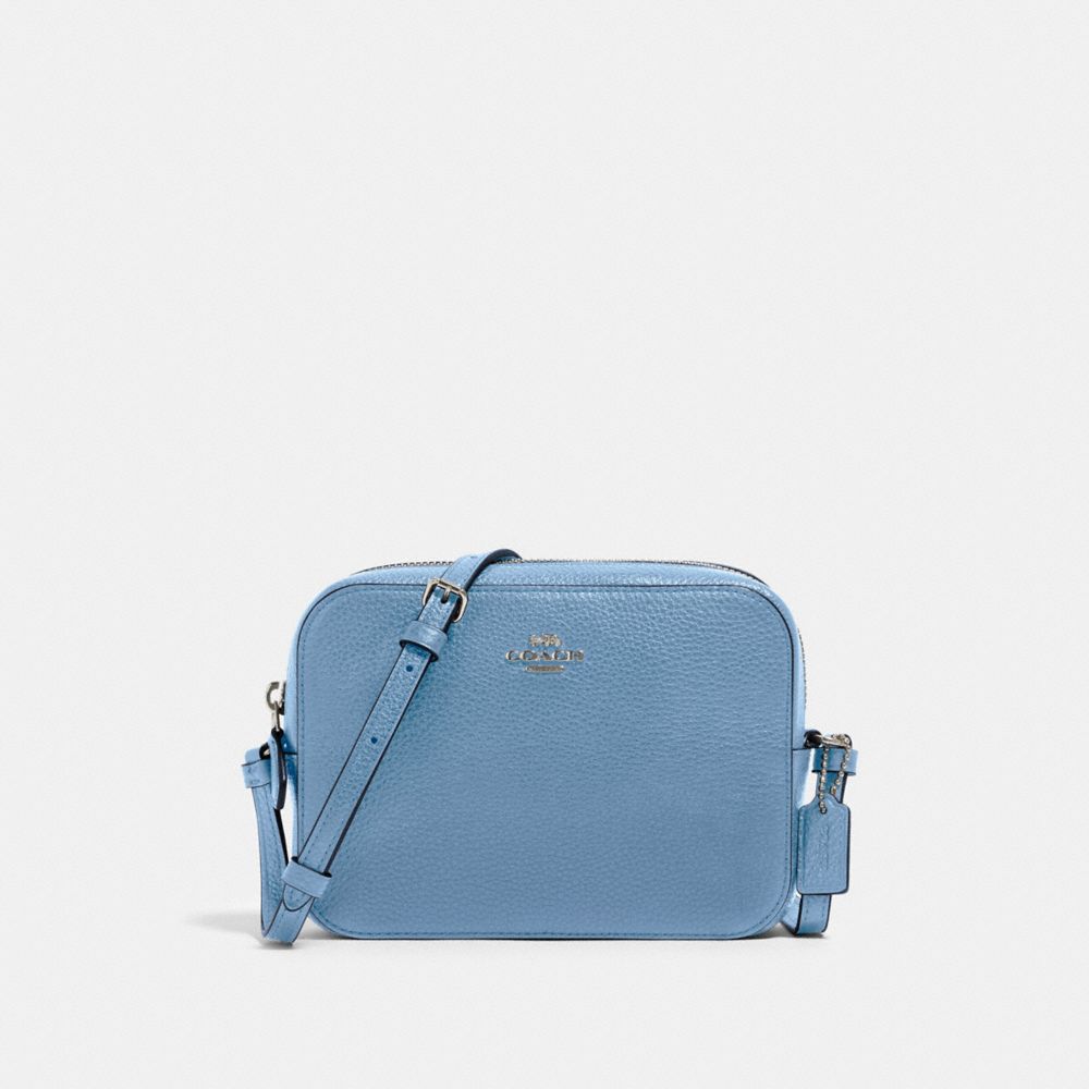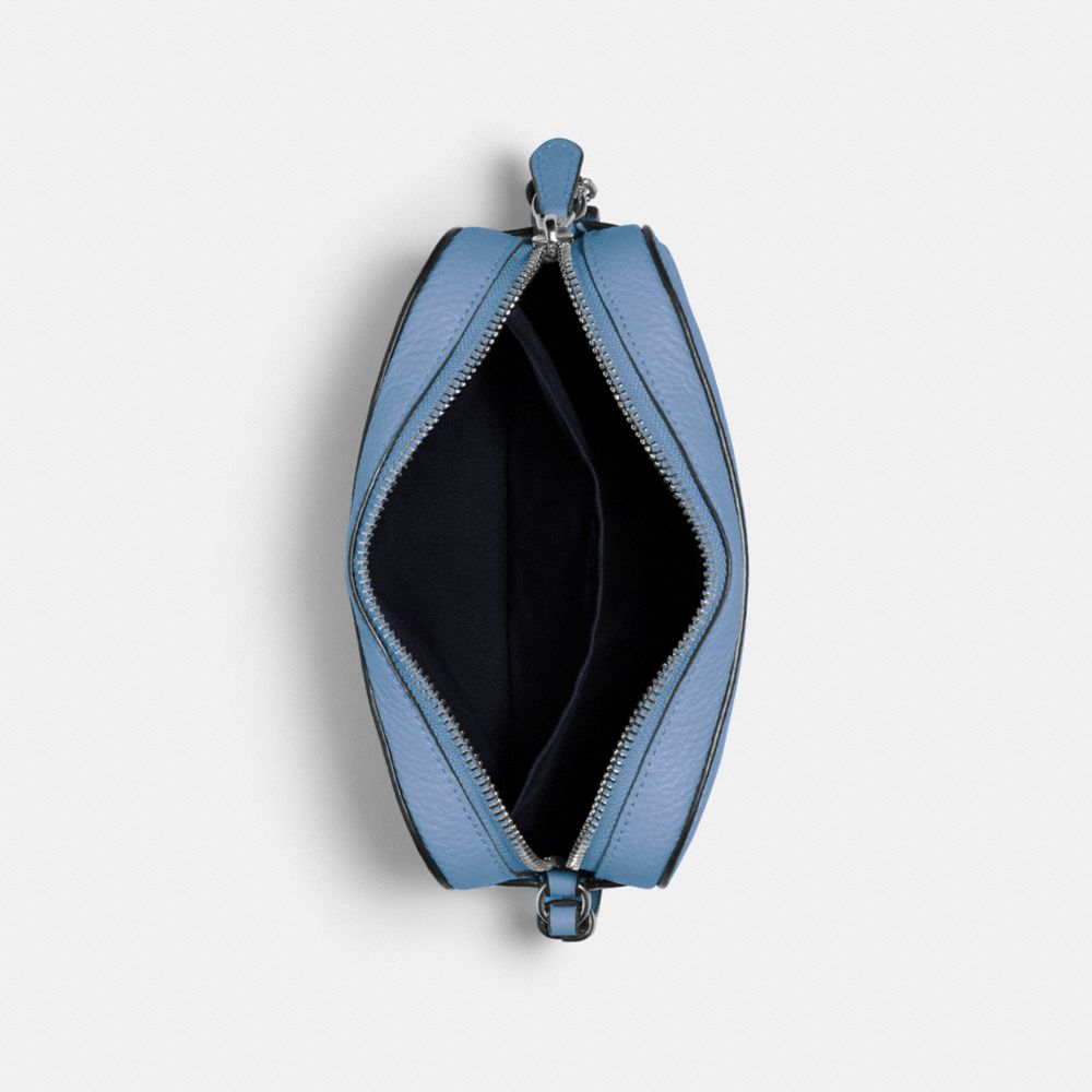 Refined pebble leather| Two credit card slots| Inside multifunction pocket| Zip closure, fabric lining| Outside open pocket| Adjustable strap with 23" drop for shoulder or crossbody wear| 7 1/4" (L) x 5 1/4" (H) x 2" (H)