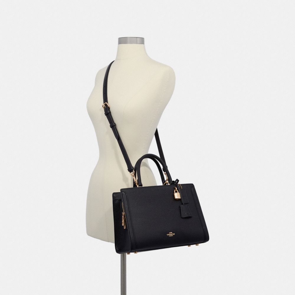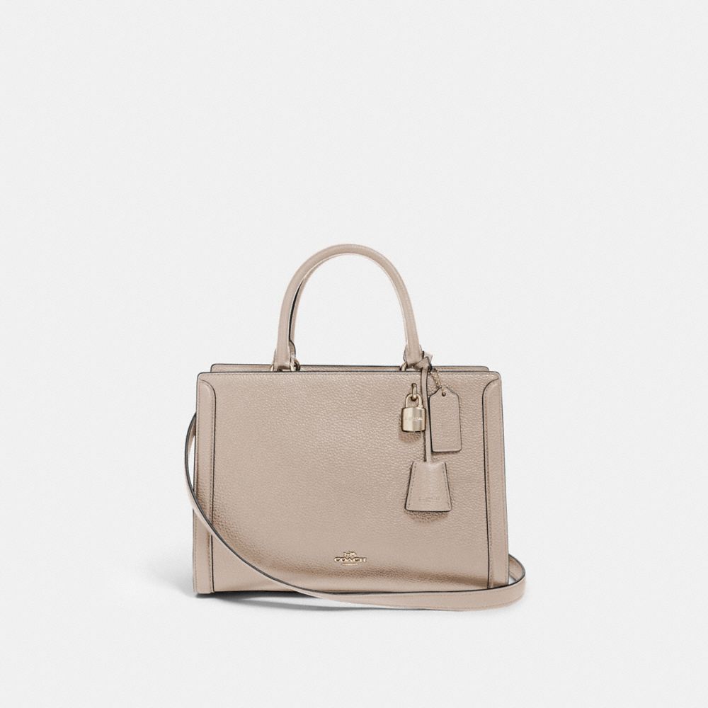 Refined pebble leather| Inside multifunction pockets| Zip closure, fabric lining| Handles with 4 1/4" drop| Outside open pocket| Detachable strap with 21 1/4" drop for shoulder or crossbody wear| 11 1/2" (L) x 8" (H) x 5 1/4" (W)