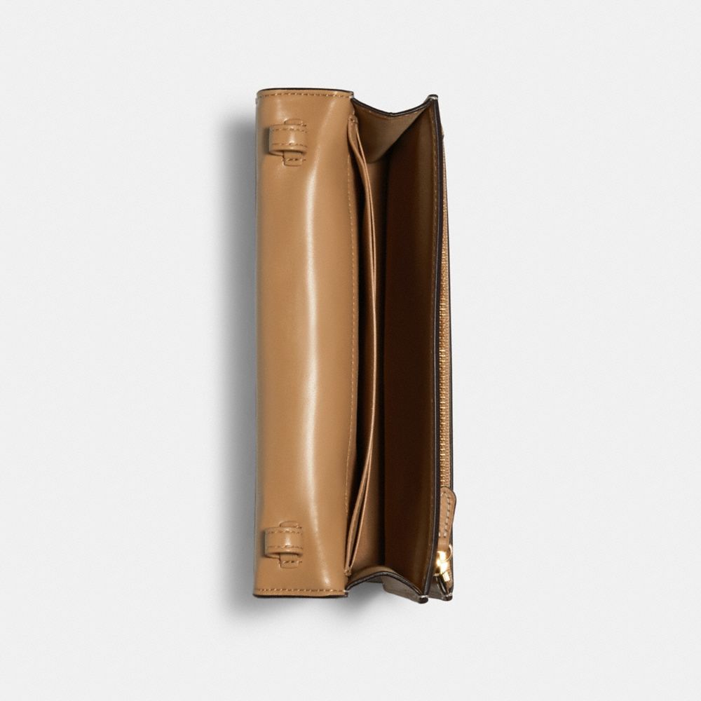 Refined calf leather, smooth leather, refined pebble leather, metallic leather, nappa leather, snake-embossed leather, suede and Signature coated canvas| Eight credit card slots| Full-length bill compartment| Inside zip pocket| Snap closure| Outside slip pocket| Detachable strap with 23" drop for shoulder or crossbody wear| 8" (L) x 4 3/4" (H) x 1 1/2" (W)
