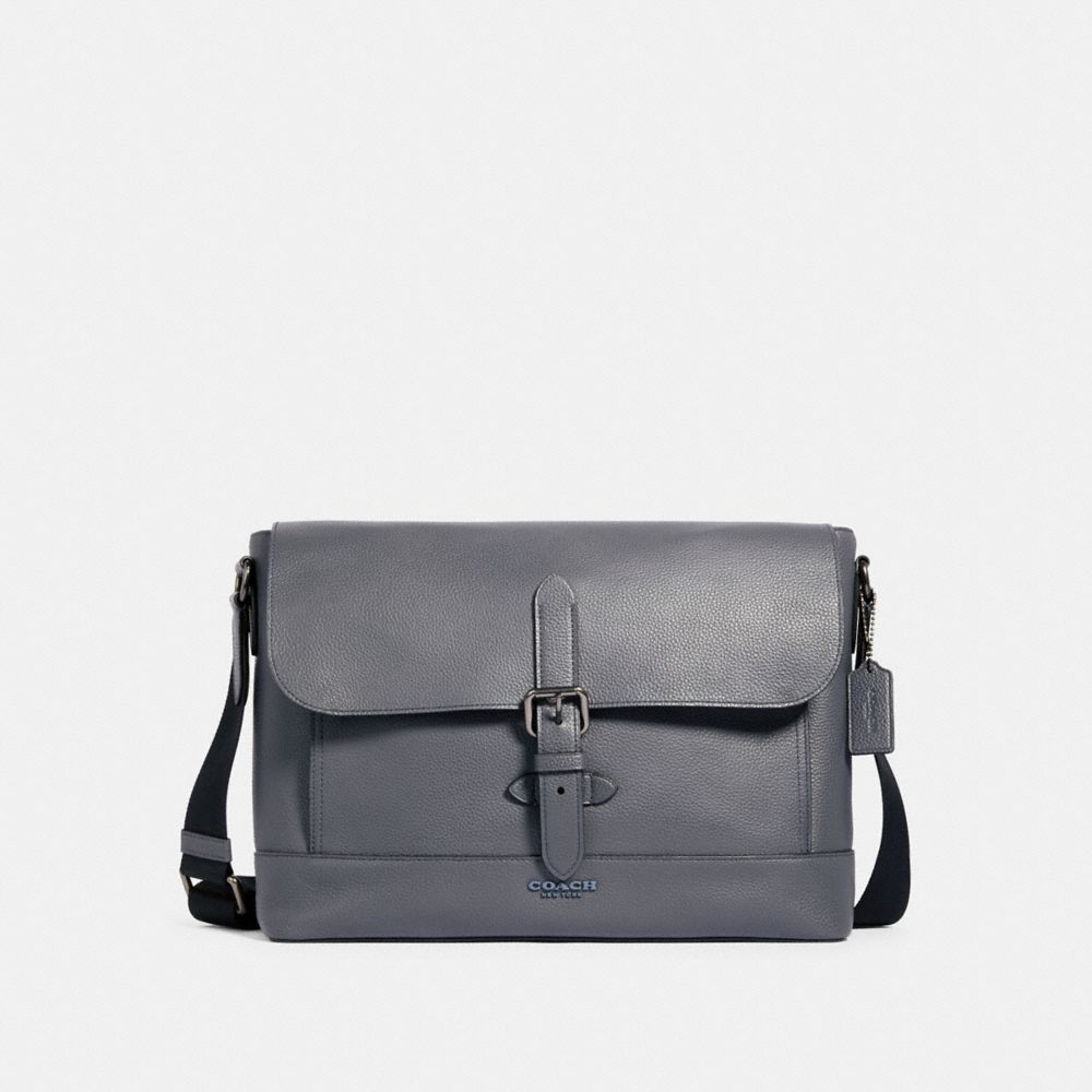 Natural pebble leather| Inside zip, cell phone and multifunction pockets| Inside laptop sleeve with secure tab| Flap closure, fabric lining| Outside slip pocket| Adjustable strap with 25" drop for shoulder or crossbody wear| 13 1/2" (L) x 9 3/4" (H) x 3 1/2" (W)