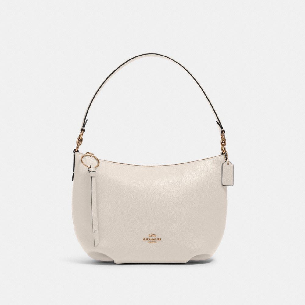 Refined pebble leather| Inside zip pocket| Zip-top closure, fabric lining| Handle with 9 1/2" drop| Outside zip pocket| Detachable strap with 21 1/2" drop for shoulder or crossbody wear| 10 3/4" (L) x 7 3/4" (H) x 4 1/4" (W)